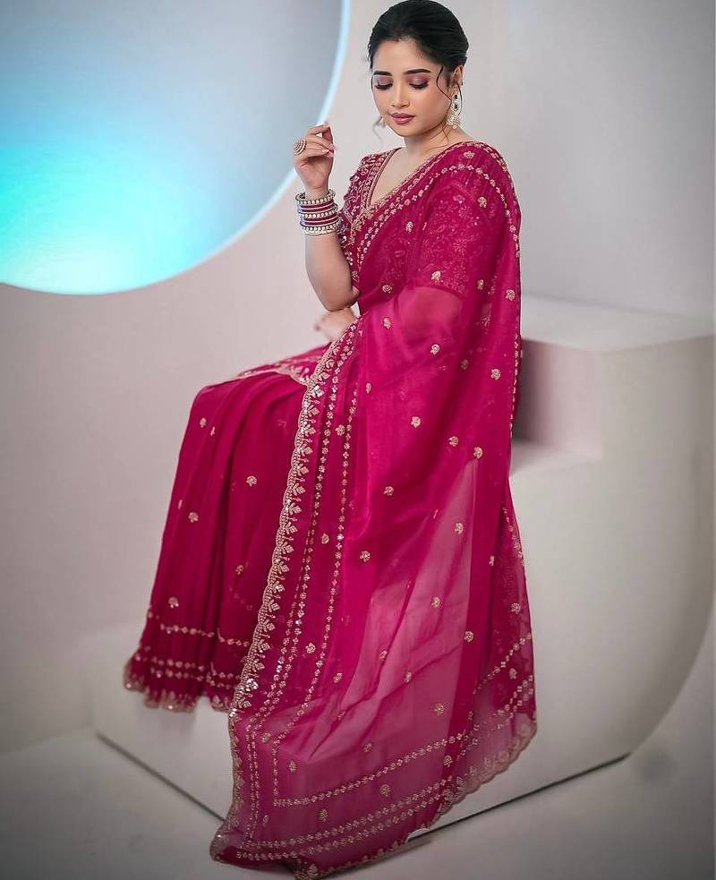 | Product Description | Experience Luxurious Elegance With This Pink Silk Saree, Exquisitely Crafted With Sequin Embroidery Work For A Refined Festive Look. Designed From Premium Space Silk Fabric, The Saree Features A Smooth Texture, Rich Sheen, And Graceful Drape That Enhances Its Regal Appeal. The Delicate Sequin Embroidery Adds Sparkle And Artisanal Beauty, Creating A Sophisticated Ethnic Look. The Luxurious Fabric And Elegant Detailing Make This Saree Perfect For Special Occasions Where Style And Grace Matter. Its Refined Craftsmanship Reflects Premium Ethnic Fashion. Perfect For Weddings, Receptions, Festive Celebrations, Cultural Functions, And Evening Events, This Women’s Embroidered Silk Saree Blends Tradition With Modern Glamour. Style It With Statement Jewellery And Classic Accessories For A Royal Ethnic Appearance. |
