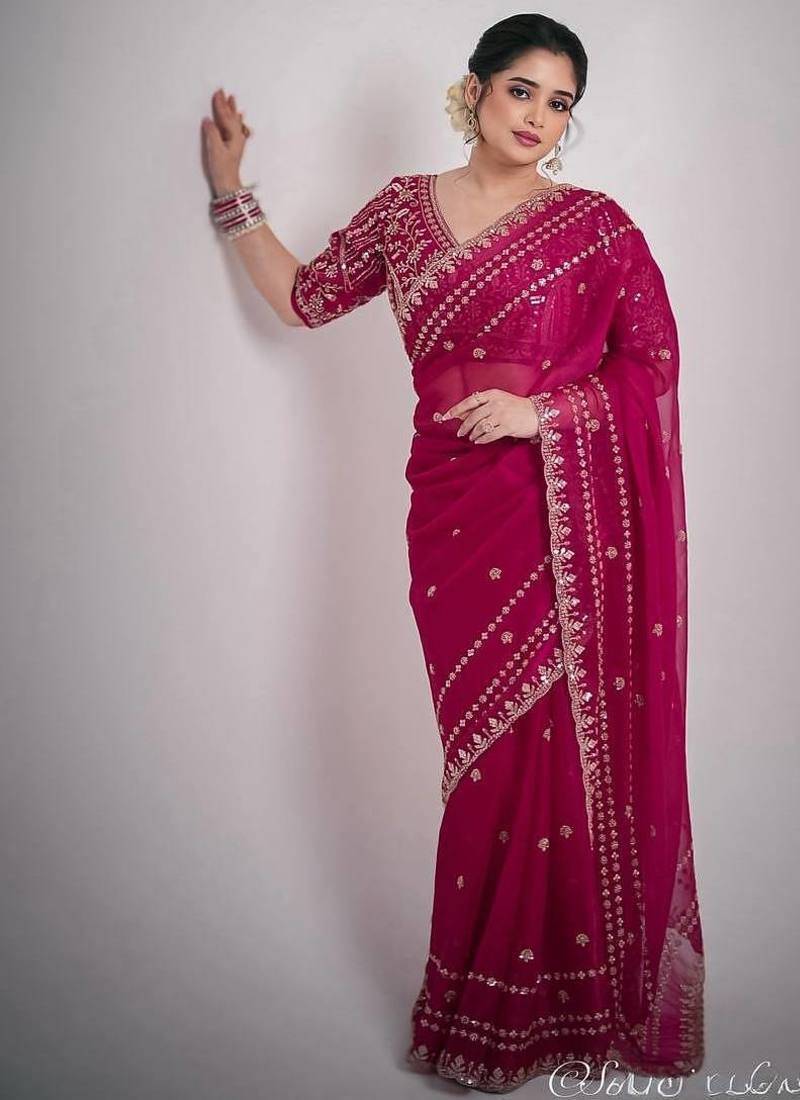 Pink silk saree with sequin embroidery work