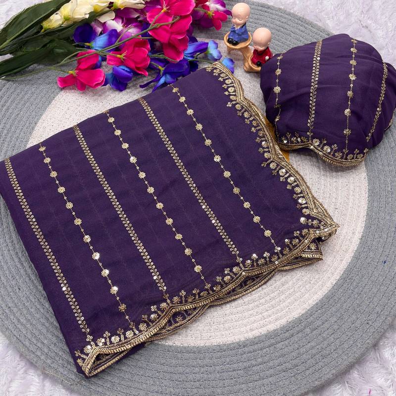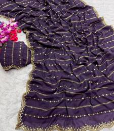 New star georgette beautiful sequence work purple saree with blouse set for women's