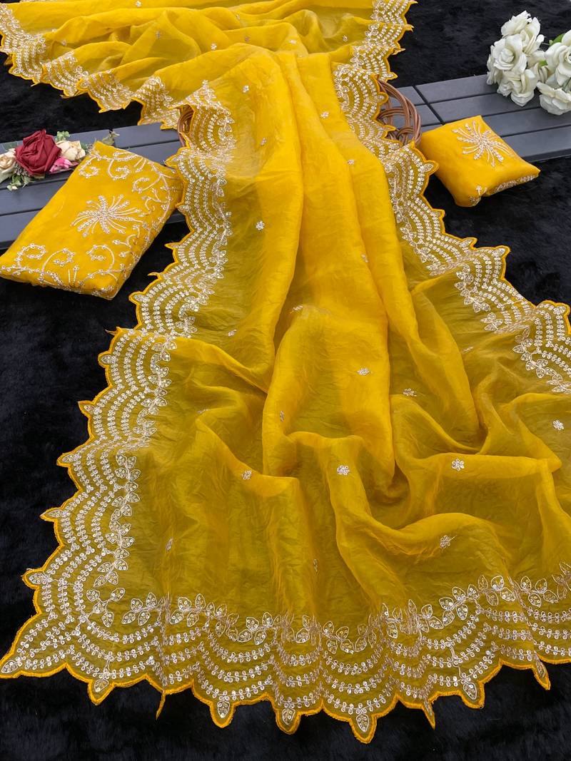 | Product Name | Pure Soft Gold Crush Multi Thread Embroidery With Sequence Work S Aree With Blouse Set | |