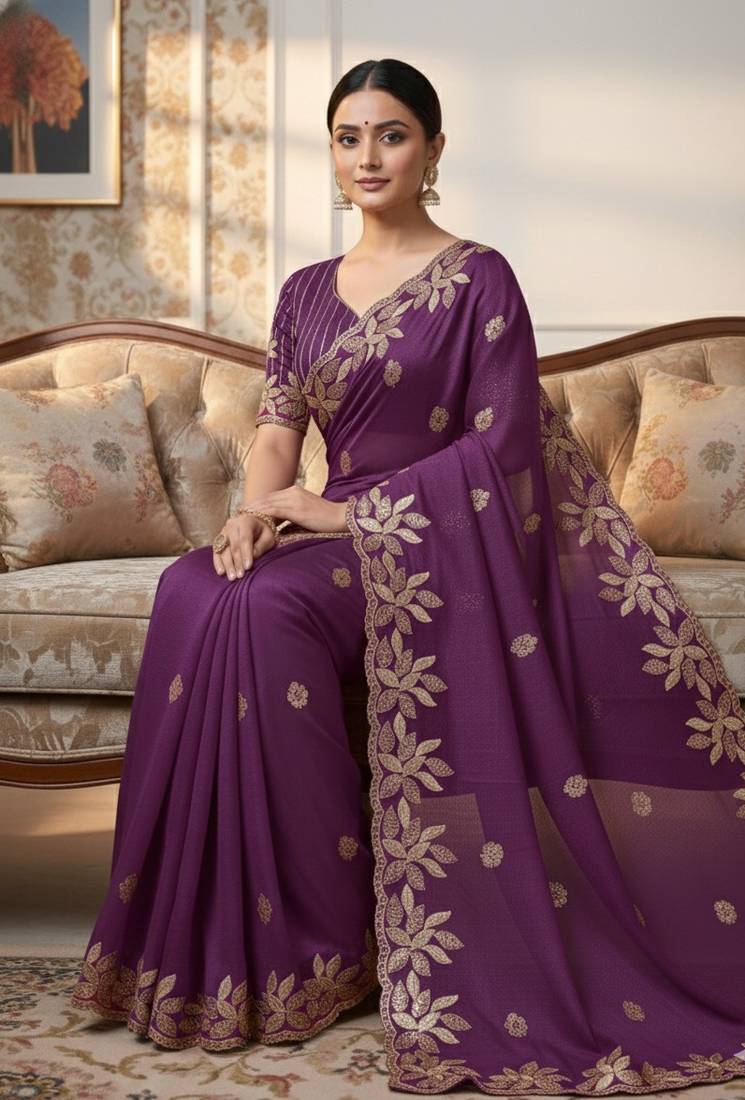 Soft jimichu silk sequins embroidery cut work lace saree with blouse set
