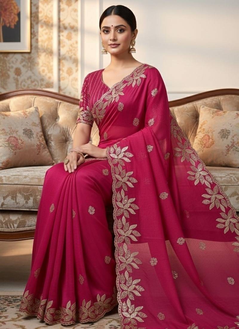 Soft jimichu silk sequins embroidery cut work lace saree with blouse set