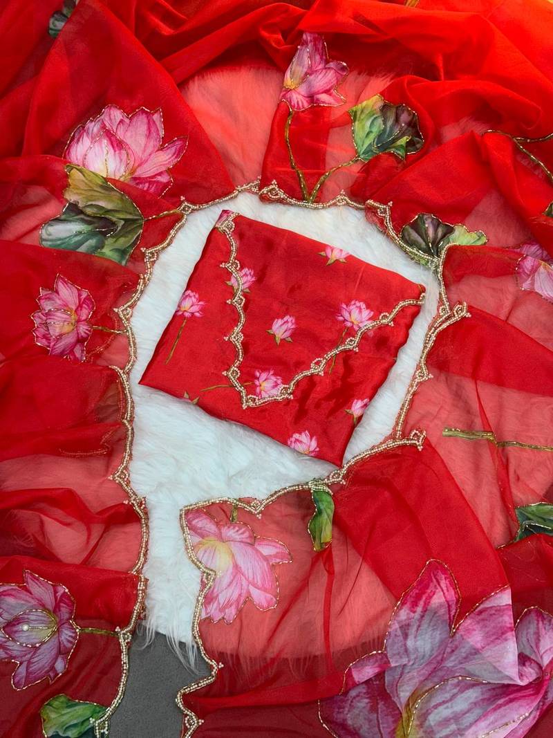 | Product Name | Soft Tabi Organza Flower Printed Women's Saree With Blouse Set | |