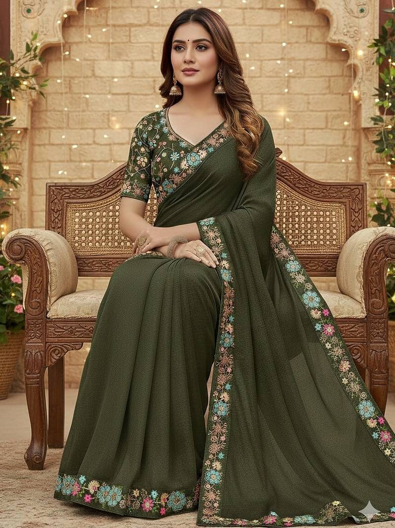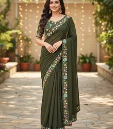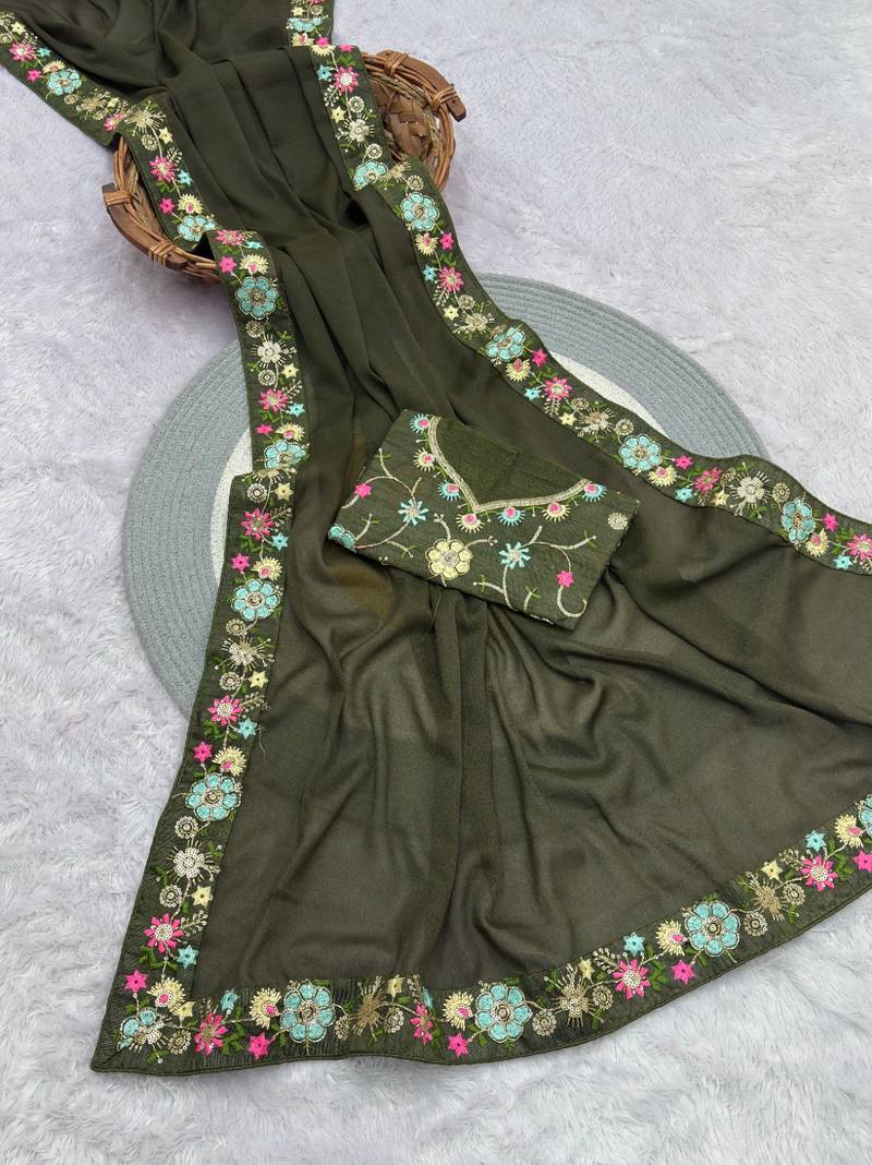 mehendi green georgette saree with sequin work and blouse