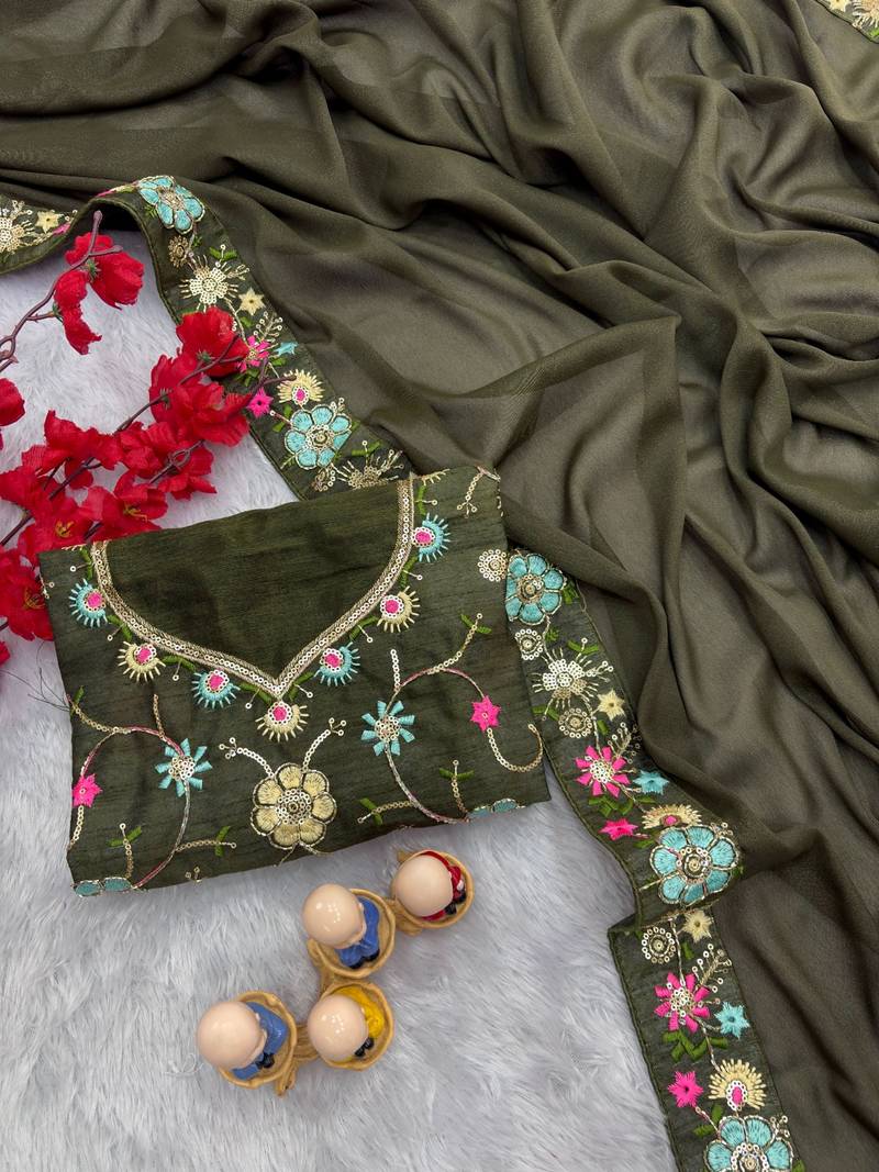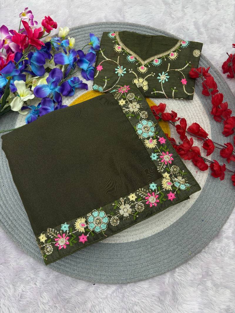Product Name Mehendi Green Georgette Saree With Sequin Work And Blouse