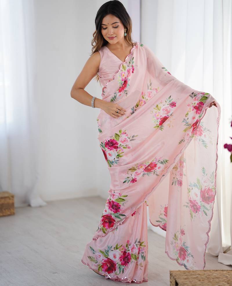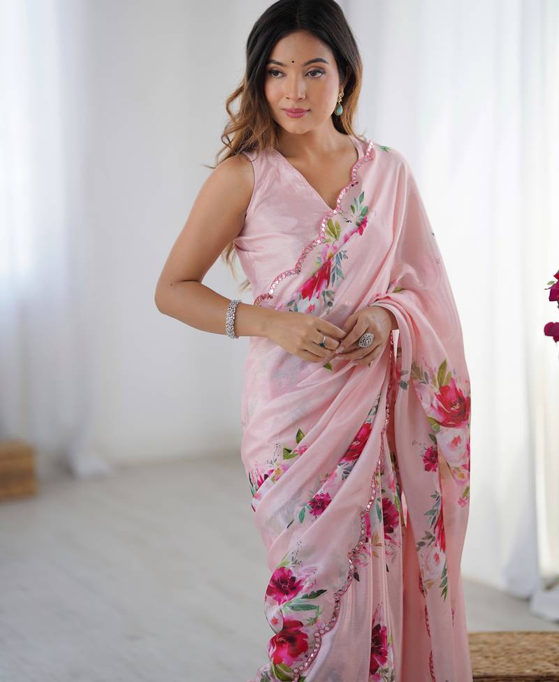 | Product Name | Chiffon Digital Print Scallped Border Foil Mirror Work Saree | |