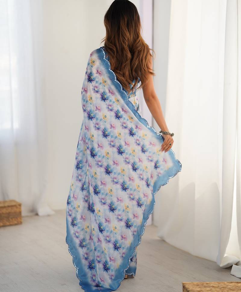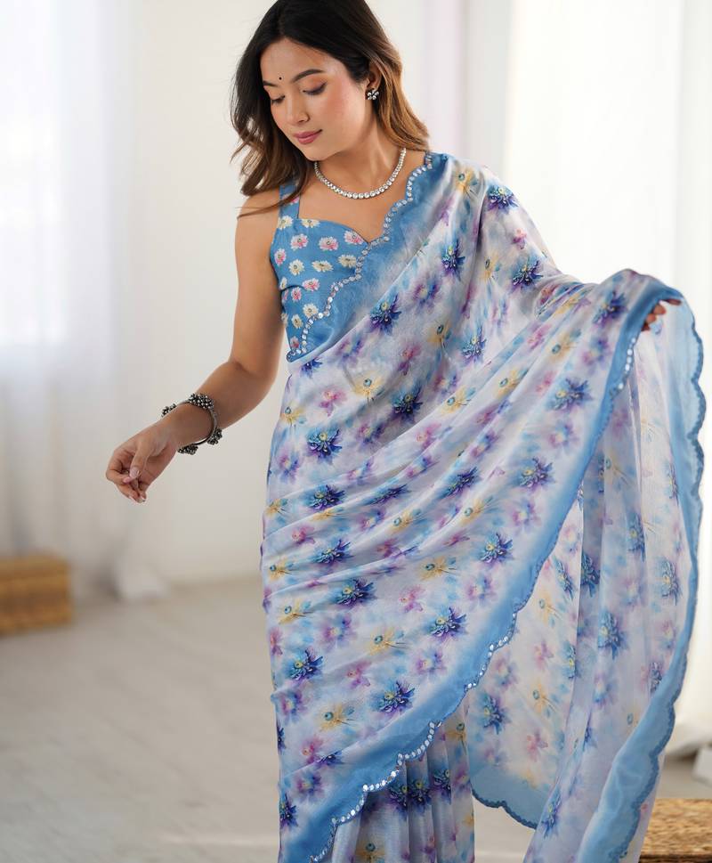 | Product Name | Chiffon Digital Print Scallped Border Foil Mirror Work Saree | |
