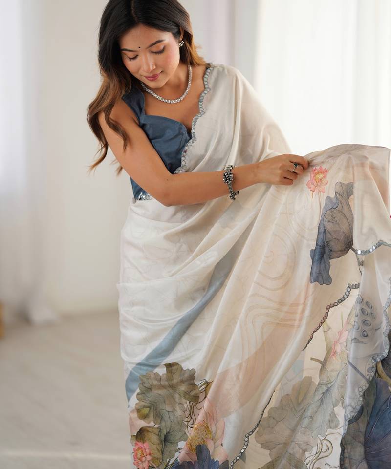 | Product Name | Chiffon Digital Print Scallped Border Foil Mirror Work Saree | |