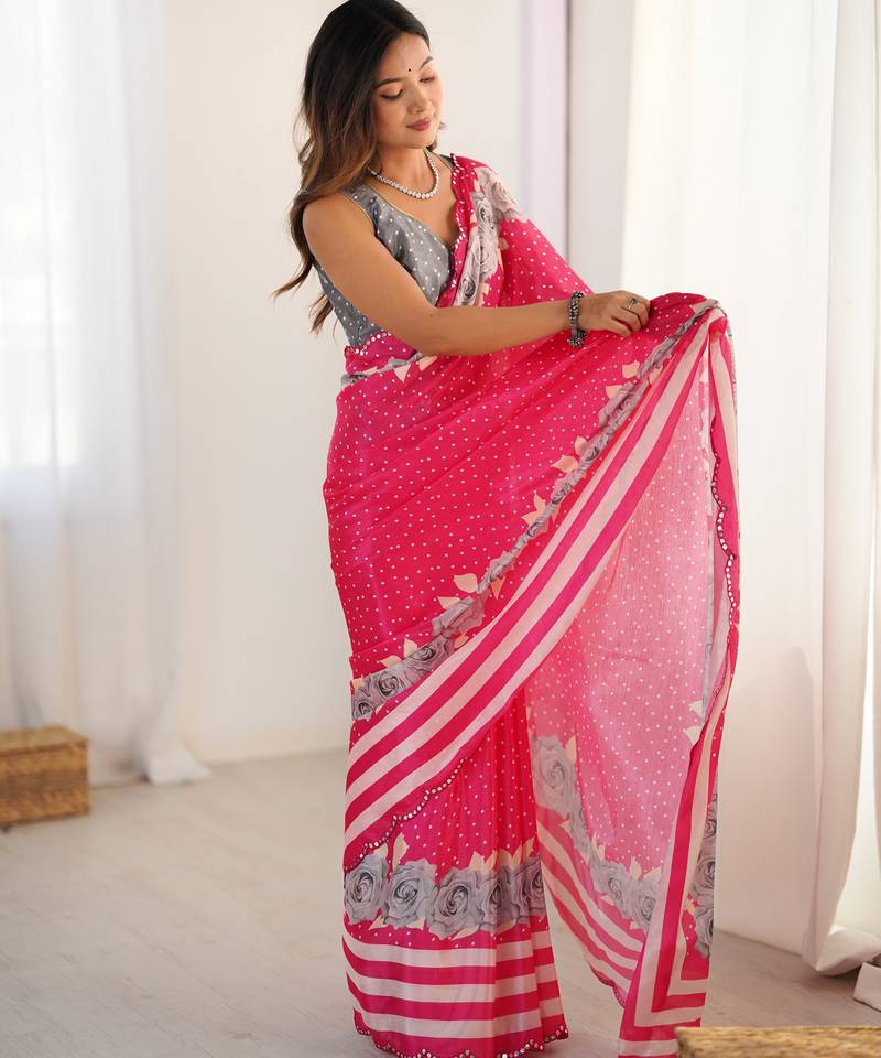 | • | Saree | : | Color- Pink / Fabric- Faux Chiffon |