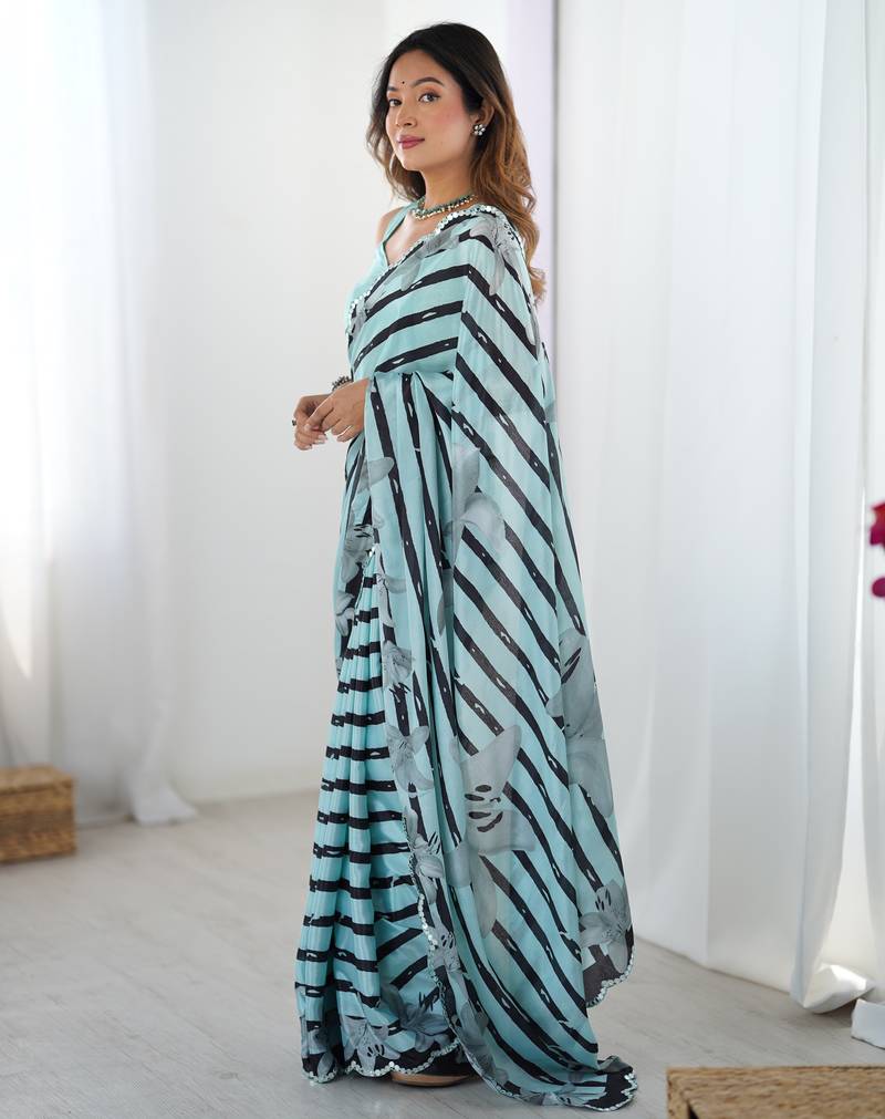 | Product Name | Chiffon Digital Print Scallped Border Foil Mirror Work Saree | |