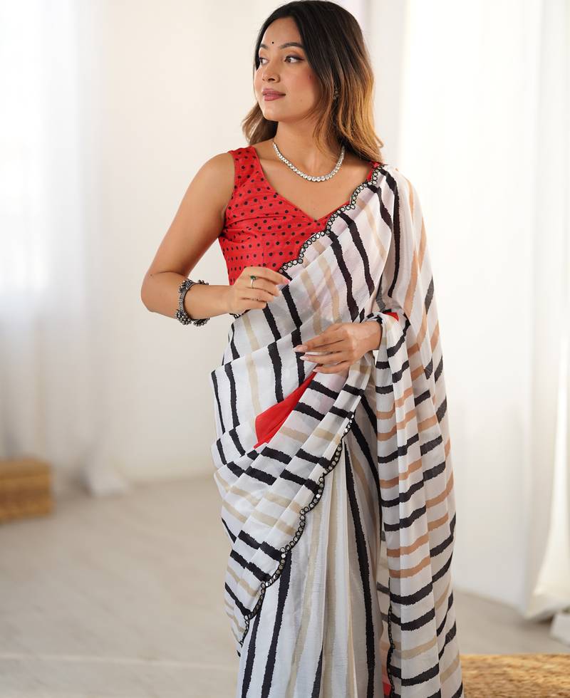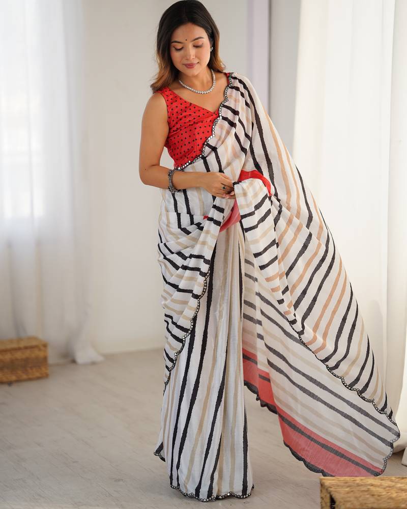 | Product Name | Chiffon Digital Print Scallped Border Foil Mirror Work Saree | |
