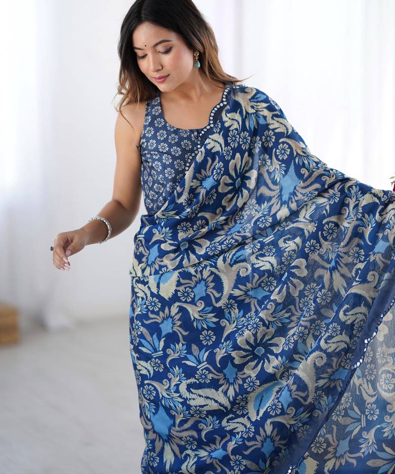 | Product Name | Chiffon Digital Print Scallped Border Foil Mirror Work Saree | |