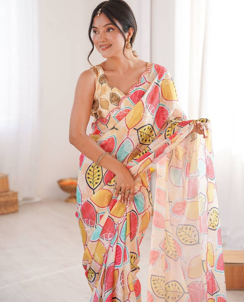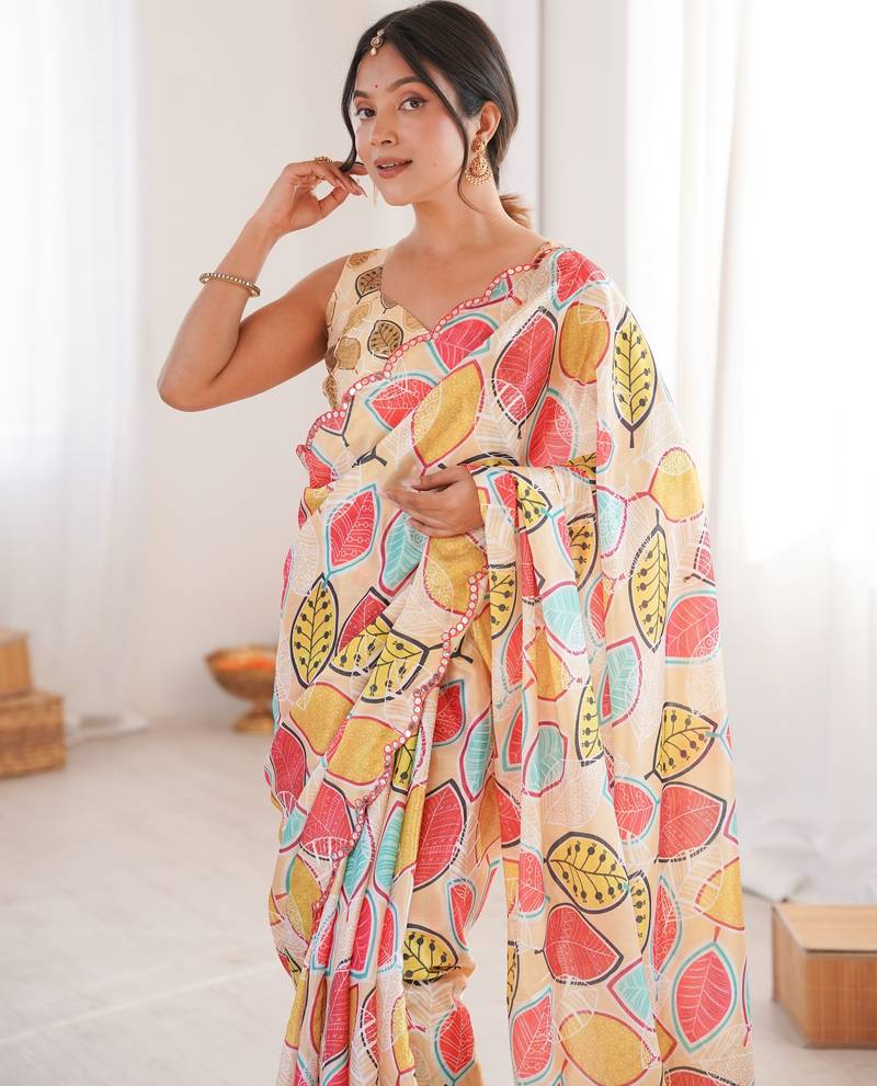 | Product Name | Chiffon Digital Print Scallped Border Foil Mirror Work Saree | |