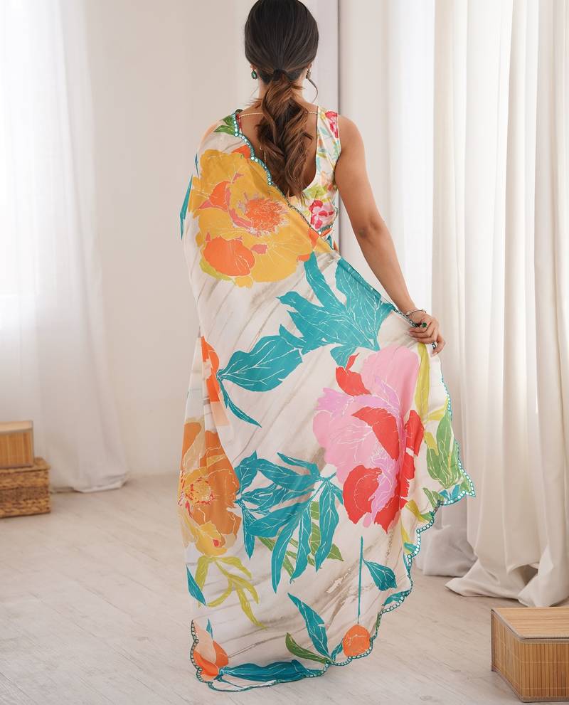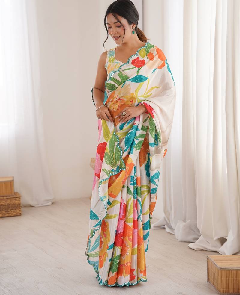 | Product Name | Chiffon Digital Print Scallped Border Foil Mirror Work Saree | |