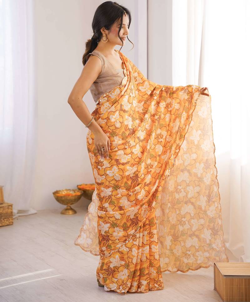 | Product Name | Chiffon Digital Print Scallped Border Foil Mirror Work Saree | |