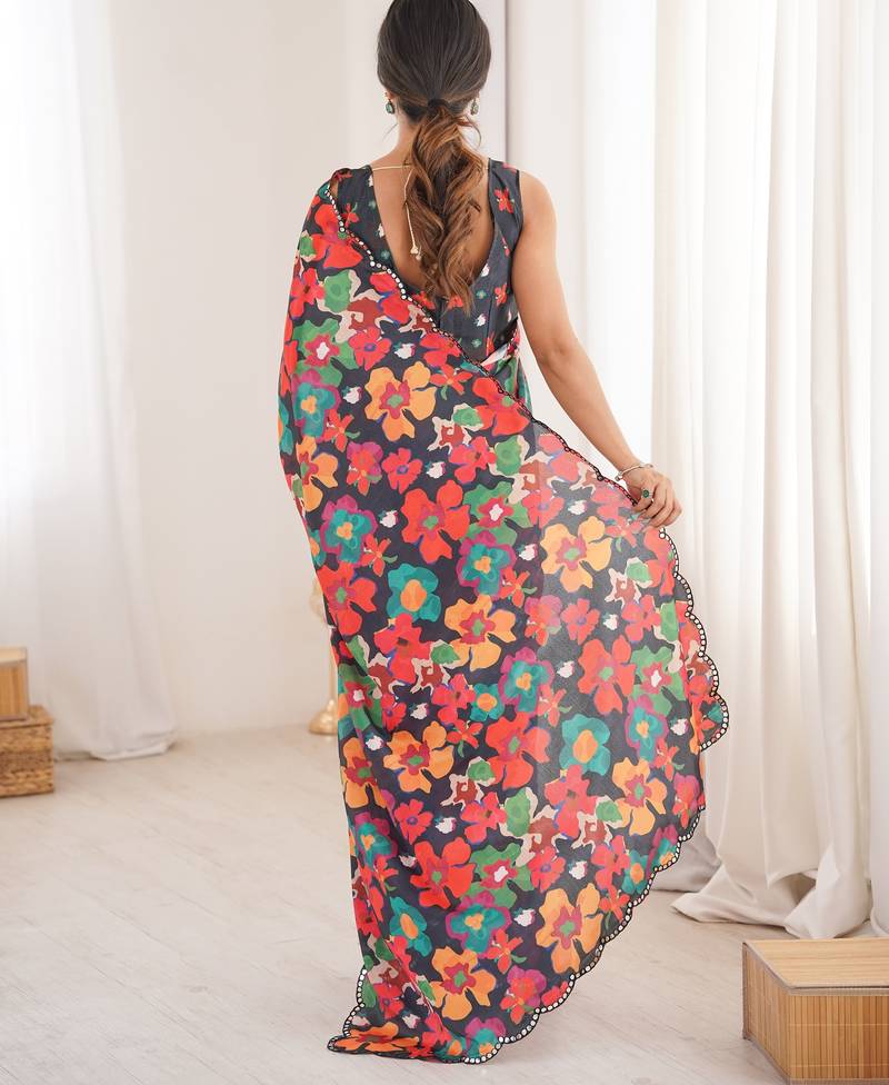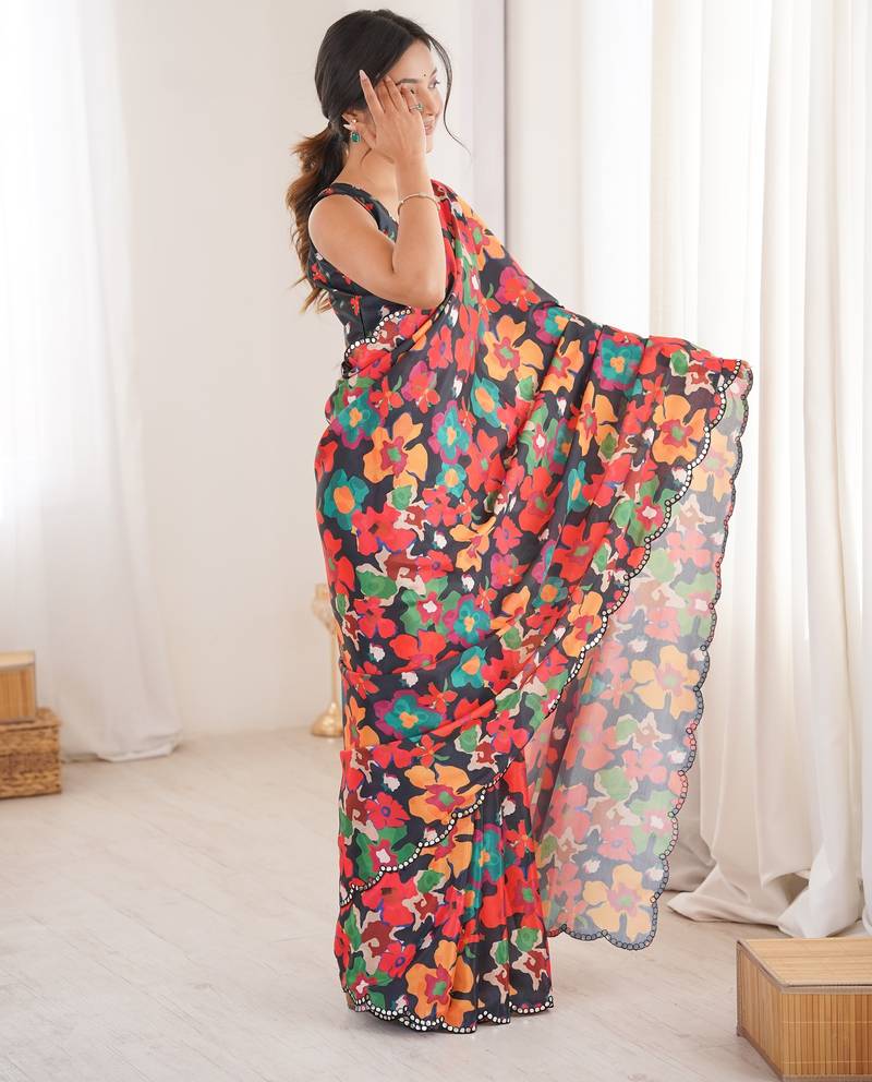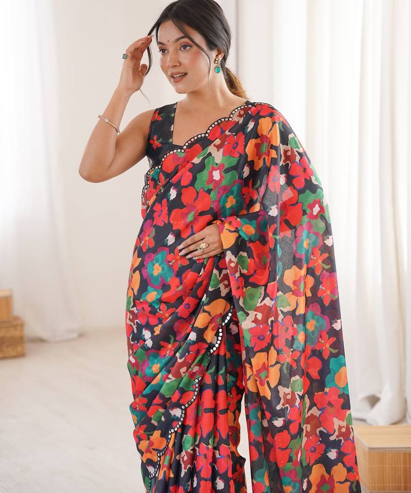 | Product Name | Chiffon Digital Print Scallped Border Foil Mirror Work Saree | |