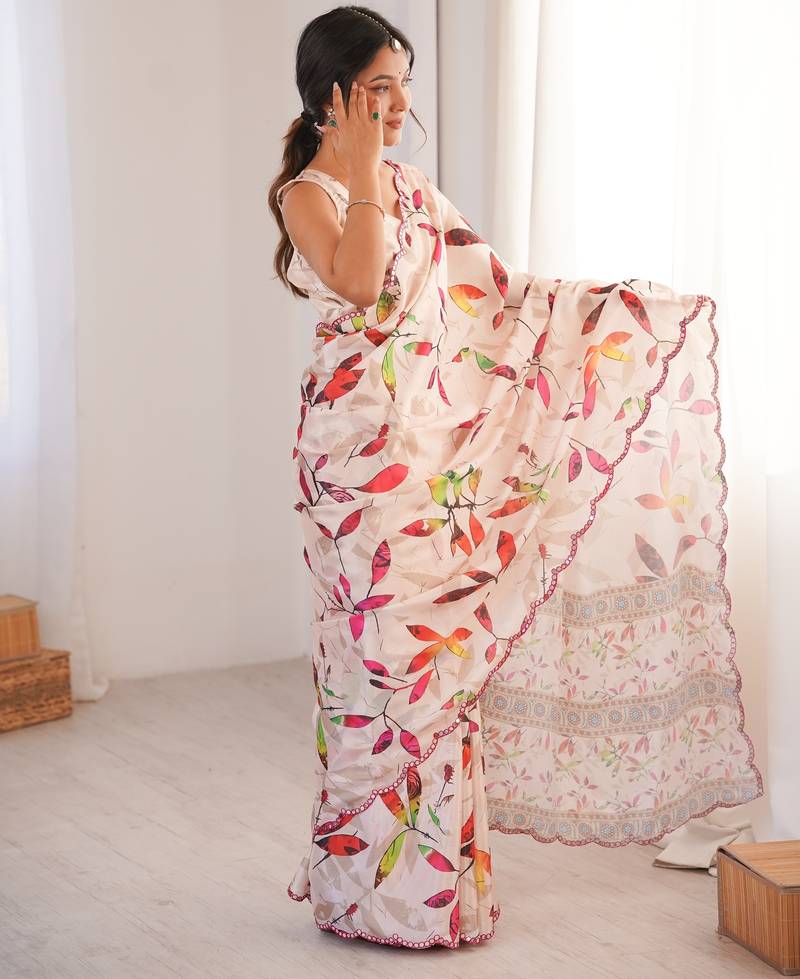 | Product Name | Chiffon Digital Print Scallped Border Foil Mirror Work Saree | |
