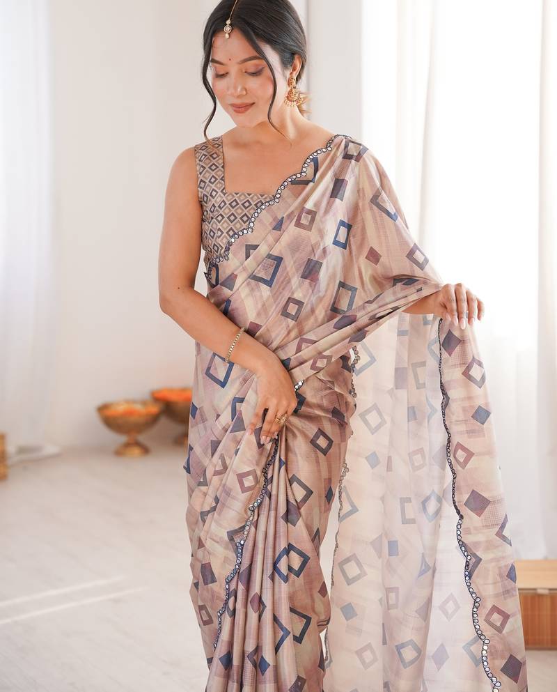 | Product Name | Chiffon Digital Print Scallped Border Foil Mirror Work Saree | |