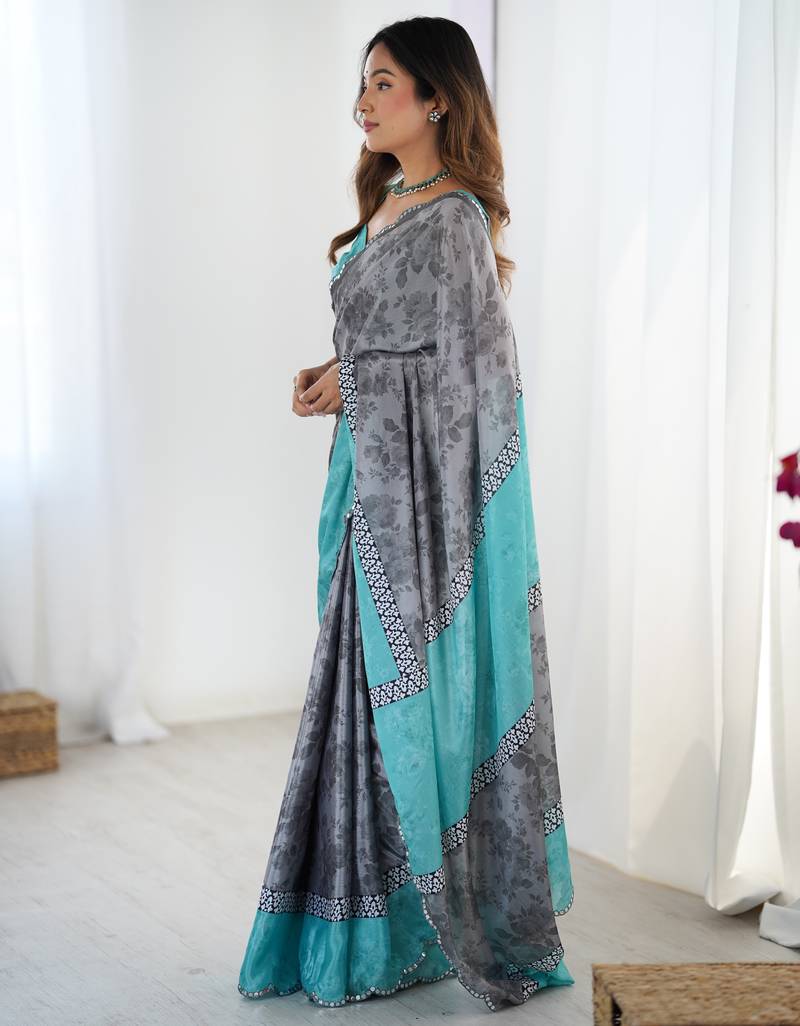 | Product Name | Chiffon Digital Print Scallped Border Foil Mirror Work Saree | |