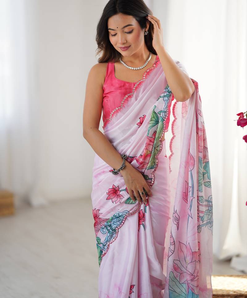 | Product Name | Chiffon Digital Print Scallped Border Foil Mirror Work Saree | |