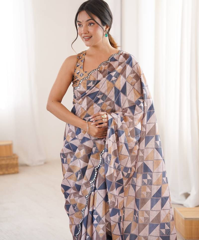 Product Name Chiffon Digital Print Scallped Border Foil Mirror Work Saree