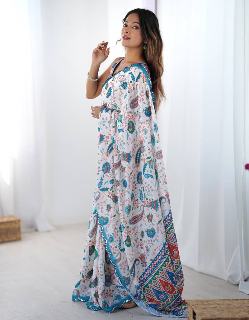 | Product Name | Chiffon Digital Print Scallped Border Foil Mirror Work Saree | |