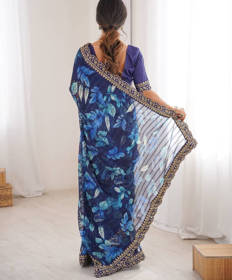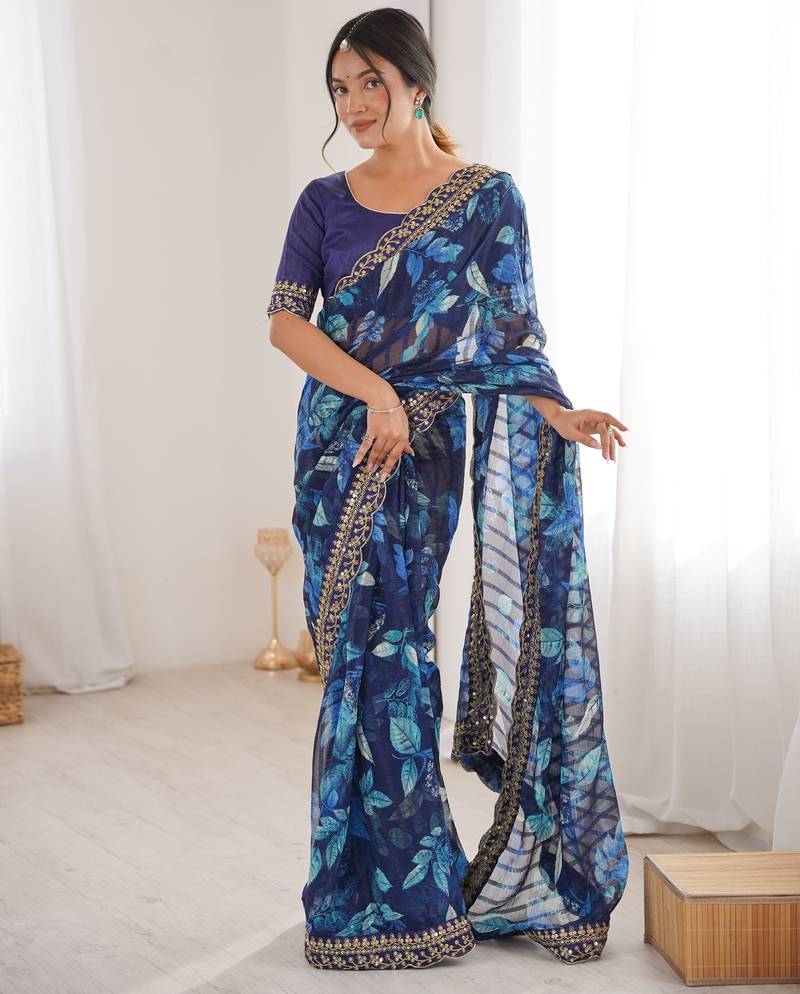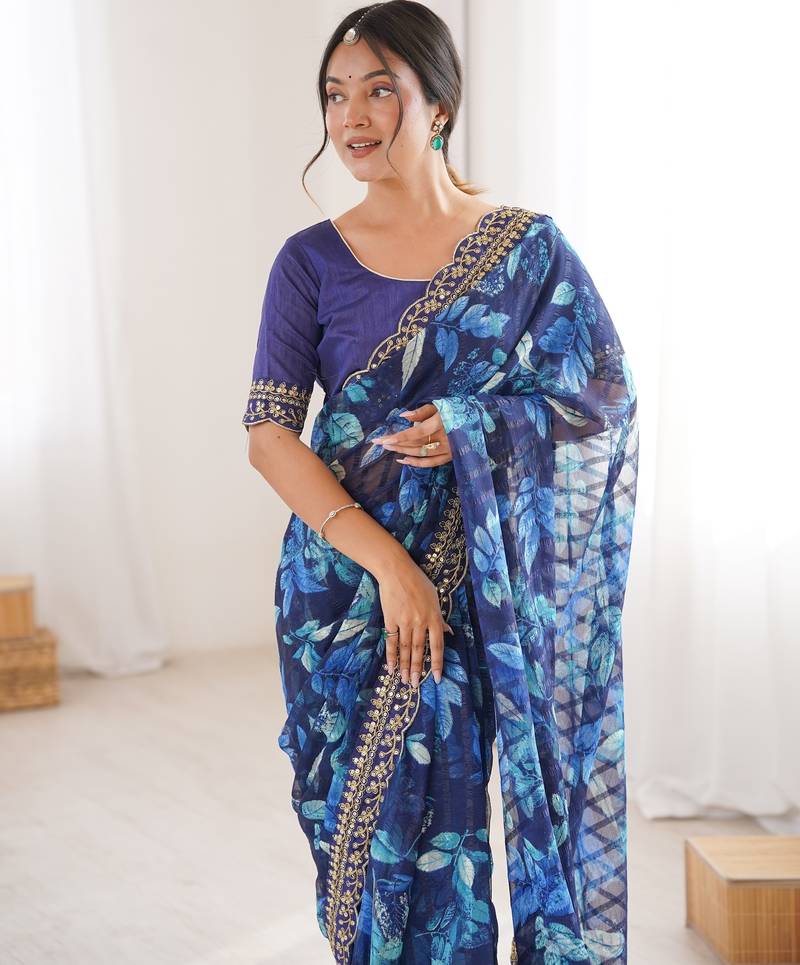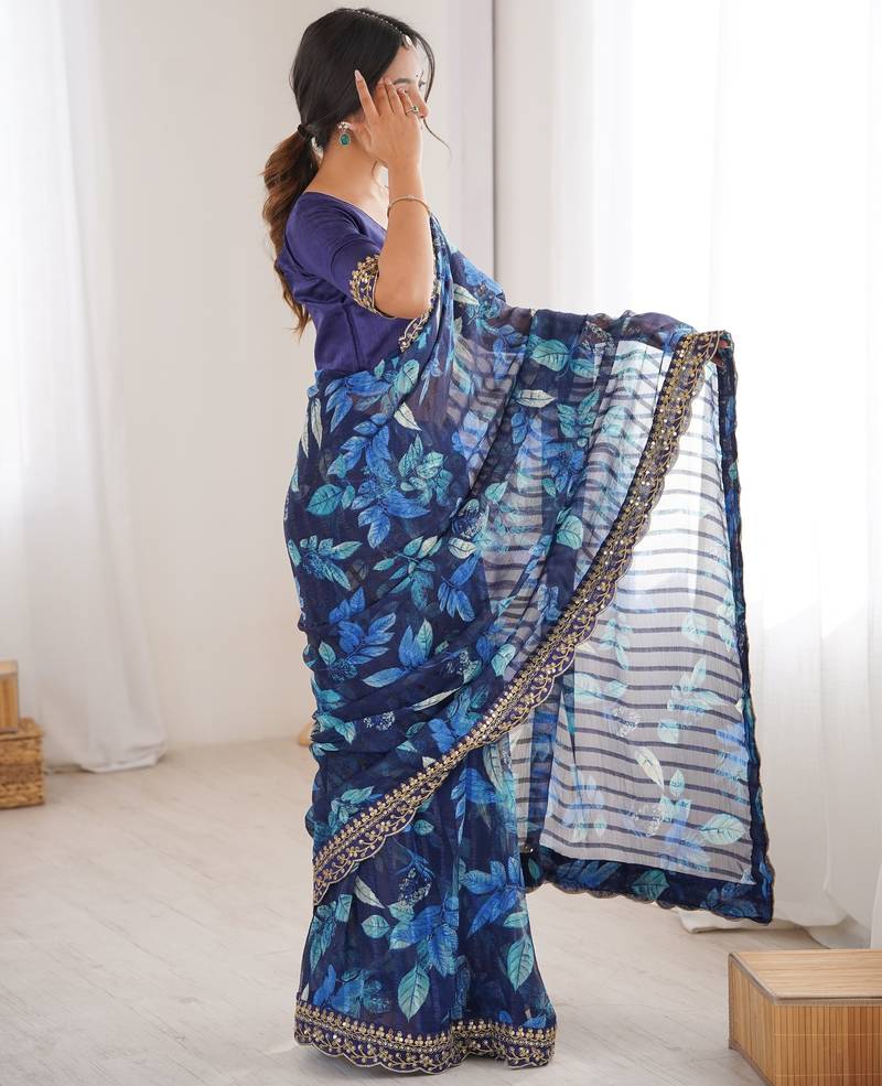 Women printed chiffon georgette partywear saree