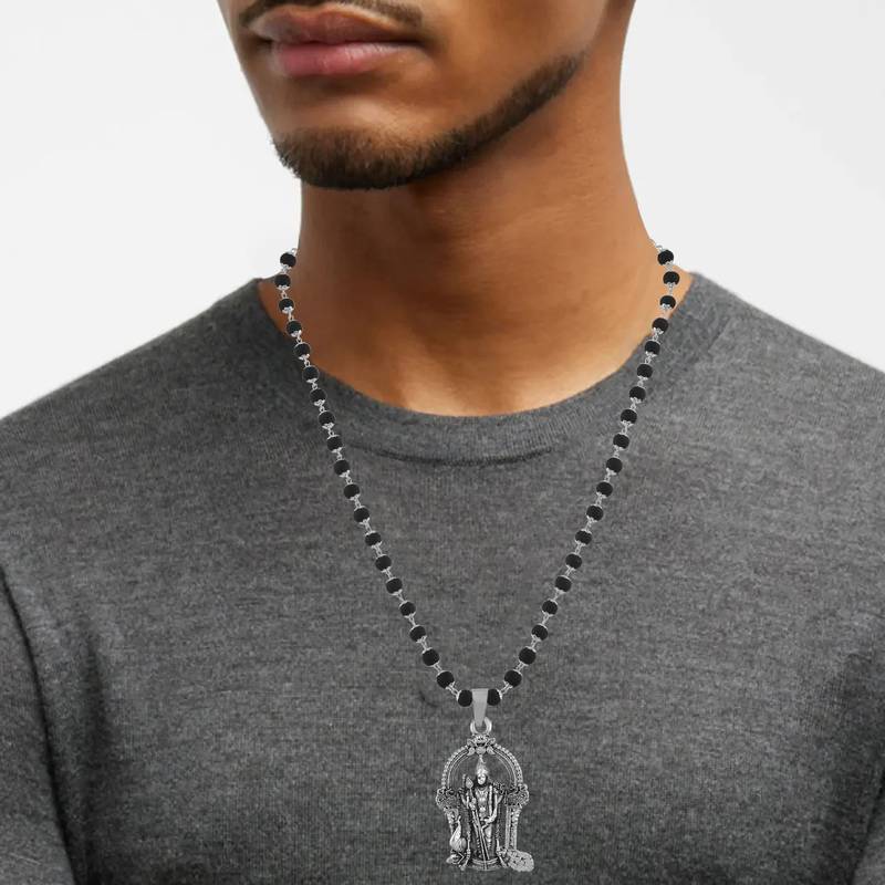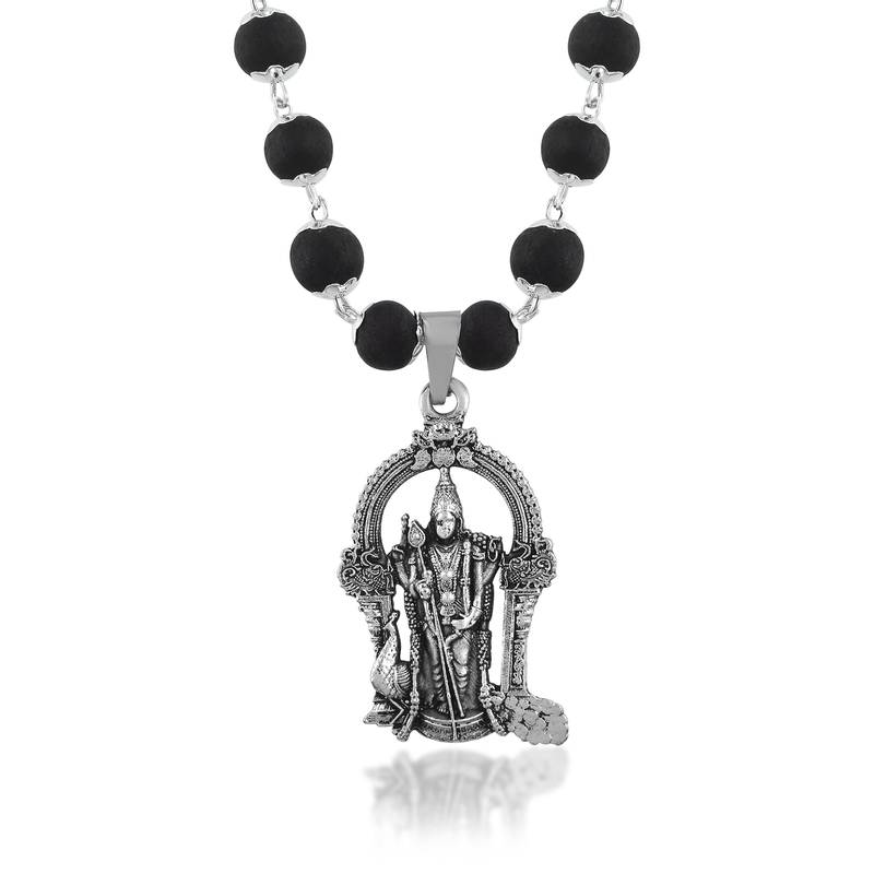 | Product Description | Elevate Your Spiritual Journey With This Exquisitely Crafted Stainless Steel Silver Plated Karungali Mala, Featuring A Divine Lord Murugan (Kartikeya) Pendant. Designed With 54 Sacred Ebony Like Karungali Beads, This Mala Is A Powerful Symbol Of Protection, Focus, And Inner Strength. The Pendant Depicts Lord Murugan Standing Beneath An Ornate Arch, Radiating Valor And Divine Grace. Karungali Wood, Revered In Vedic Traditions, Is Known For Its Ability To Absorb Negative Energies And Promote Mental Clarity. When Paired With The Silver Plated Finish And The Image Of Lord Murugan—The Warrior Deity And Son Of Lord Shiva—This Mala Becomes A Potent Spiritual Tool For Devotees Seeking Courage, Discipline, And Victory Over Inner Battles. Ideal For Daily Wear, Meditation, Or Temple Visits, This Mala Blends Traditional Symbolism With Modern Durability. Whether You're A Devotee Of Murugan Or Seeking A Meaningful Gift, This Sacred Necklace Offers Both Aesthetic Beauty And Spiritual Resonance. Spiritual Significance & Benefits: Karungali Beads Are Believed To Ward Off Evil Energies, Stabilize Emotions, And Enhance Spiritual Focus. Lord Murugan, The God Of War And Wisdom, Blesses The Wearer With Courage, Clarity, And Protection From Adversities. Wearing This Mala During Prayers Or Meditation Helps Align Your Energy With Divine Strength And Purpose. The Number 54 Beads Symbolizes Spiritual Completeness And Is Ideal For Mantra Chanting And Japa Practices. Silver Plating Adds A Layer Of Purity And Cooling Energy, Balancing The Fiery Nature Of Murugan’s Vel (Spear). |
