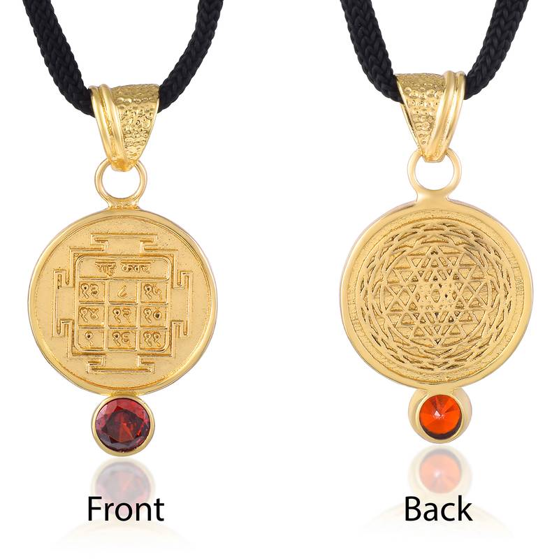 Experience Spiritual Protection And Planetary Balance With This Rahu Kawach Pendant, Crafted In Pure 24 Kt Micron Gold Plated Brass, Designed As A 4 Cm Reversible Coin. One Side Features The Sacred Rahu Yantra, While The Other Holds The Kawach — Together Offering A Powerful Shield Against The Malefic Effects Of Planet Ketu. Set With A Top Quality Natural Hessonite (Gomed) Gemstone And Suspended On A Silky Cotton Thread, This Pendant Is Ideal For Those Seeking Relief From Karmic Obstacles, Emotional Instability, And Spiritual Confusion. Highly Recommended By Astrologers, This Unisex Pendant Is Especially Beneficial For Individuals Experiencing The Adverse Effects Of Rahu In Their Birth Chart — Such As Delays, Detachment, Or Sudden Disruptions. People Widely Beleive Wearing It Regularly Helps Align Ones Energy, Enhance Intuition, And Restore Inner Peace.