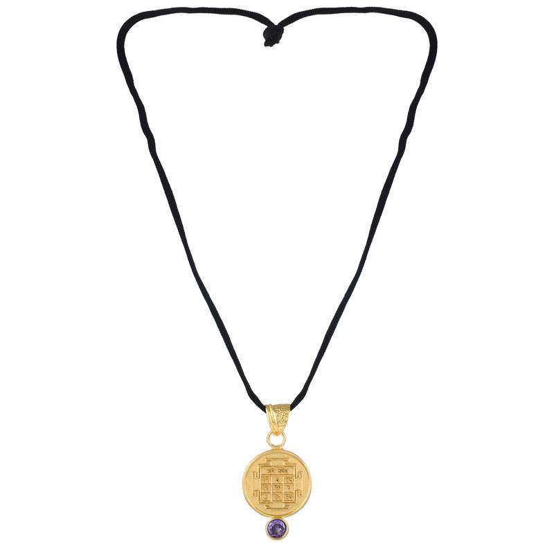 Product Description | Embrace Divine Protection And Astrological Harmony With This Handcrafted Shani Kawach Pendant, Made From Pure Brass, With 24 Kt Micron Gold Plating. And Studded With A Natural Blue Sapphire—The Gemstone Most Recommended By Astrologers To Pacify Shani (Saturn). Designed For Spiritual Seekers And Astrology Believers, This Pendant Features Two Sacred Faces: Front Side: Intricate Shani Kawach Arrangement, Believed To Shield The Wearer From Harmful Energies And Planetary Afflictions. Reverse Side: Powerful Shani Yantra, A Geometric Spiritual Diagram That Channels Saturn’s Blessings And Balances Karmic Influences. Suspended From A Black Braided Thread For Enhanced Spiritual Effect, This Pendant Is Already Energised And Ritually Purified, Ready To Wear By Men And Women Of All Ages. It Is Widely Revered For Mitigating The Effects Of Shani Dosh, Shani Dasha, Sade Saati, And Dhaiyya, Making It A Trusted Talisman In Vedic Astrology. Whether Worn For Protection, Spiritual Alignment, Or As A Meaningful Gift, This Pendant Blends Tradition, Craftsmanship, And Cosmic Energy Into One Timeless Accessory. |