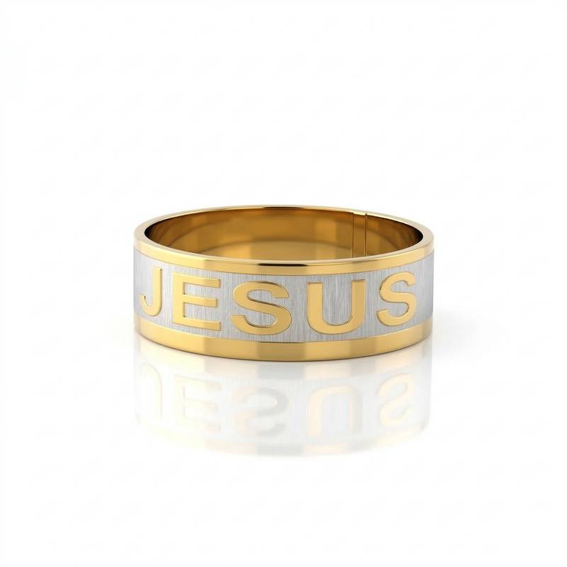 Express Your Devotion In Style With This Dual Tone Christian Finger Ring, Crafted From Durable Brass And Finished With Radiant Gold Plating. The Centerpiece Of This Elegant Band Is The Word “Jesus” Carved Into A Silver Toned Cavity, Symbolizing Faith, Strength, And Eternal Love. The Ring’s Silky Smooth Finish Inside And Outside Ensures Comfort For Everyday Wear, While The Polished Gold Edges Contrast Beautifully With The Matte Silver Band, Creating A Striking Designer Look. Suitable For Both Men And Women, This Versatile Ring Blends Spirituality With Modern Fashion, Making It Perfect For Prayer Gatherings, Festive Occasions, Or As A Meaningful Gift. Christian Jewellery Has Long Been A Symbol Of Devotion And Identity, And This Ring Continues That Heritage In A Contemporary Design. Its Timeless Appeal Resonates With Believers Worldwide, Offering Both Spiritual Connection And Stylish Elegance.