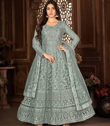Beguiling grey net semi stitched ethnic women's suits semi stitched