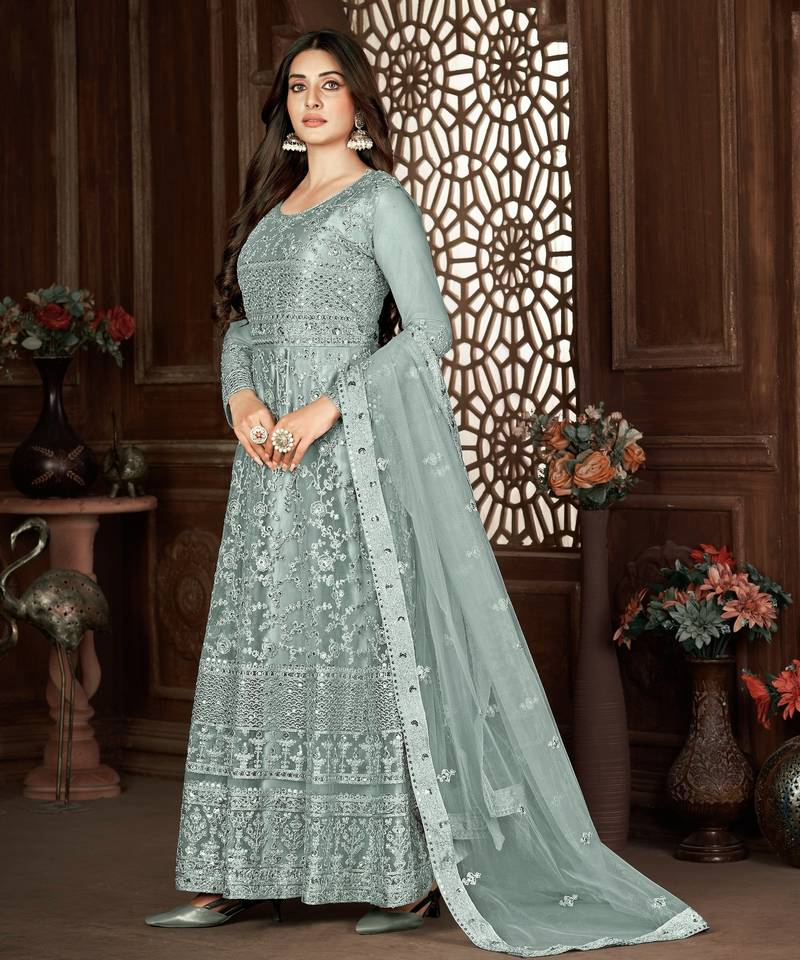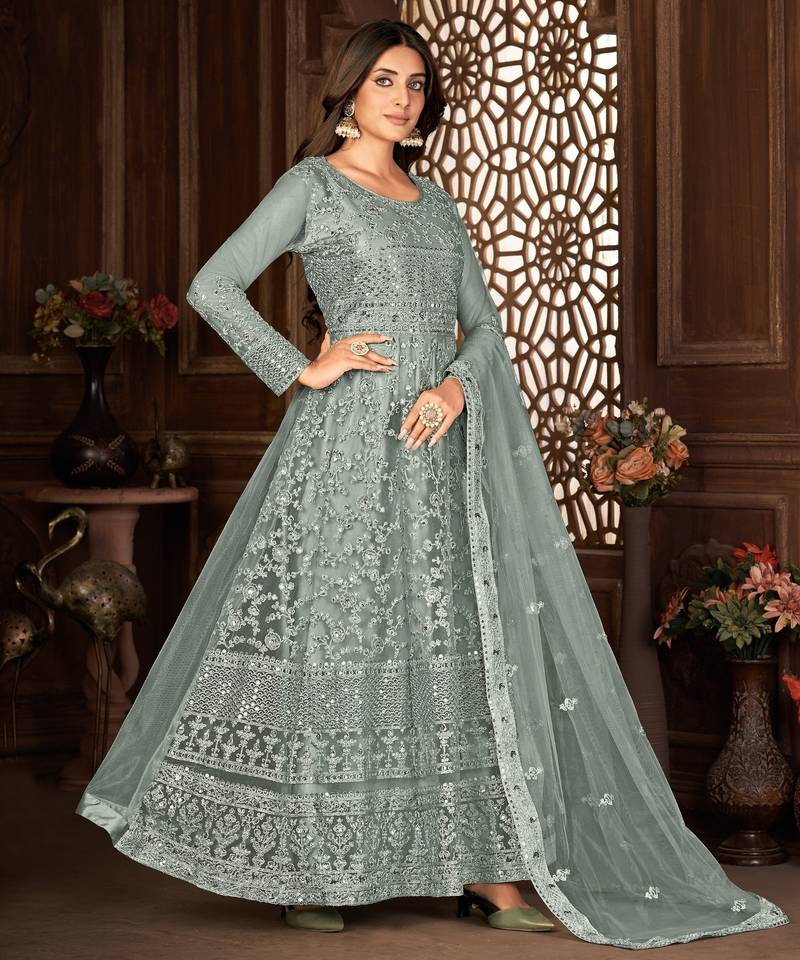 | Product Name | Beguiling Grey Net Semi Stitched Ethnic Women's Suits Semi Stitched | |