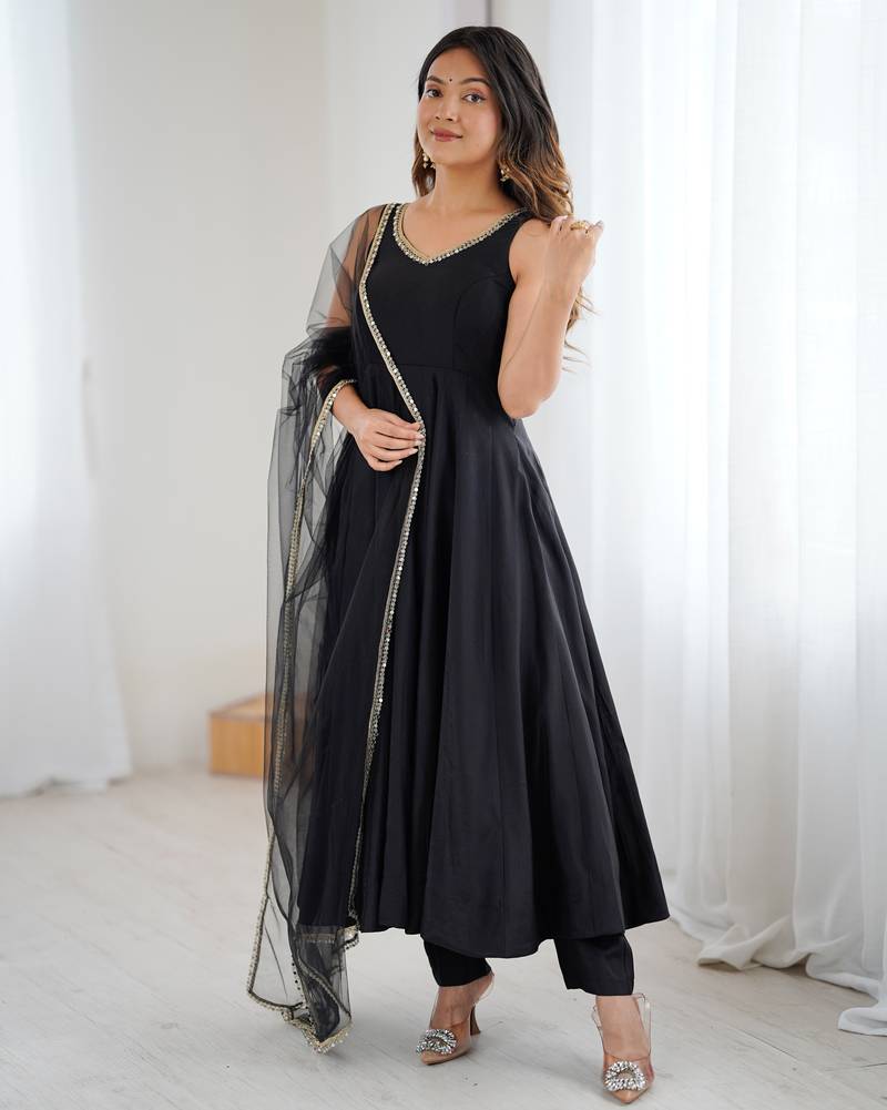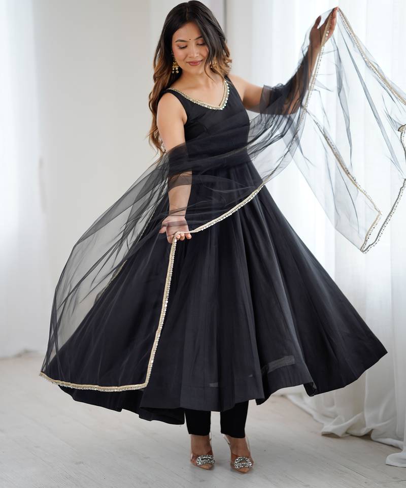 | Product Name | Black Color Chanderi Pure Roman Silk Anarkali Suit | |