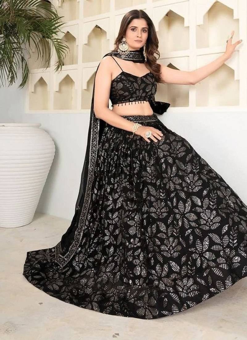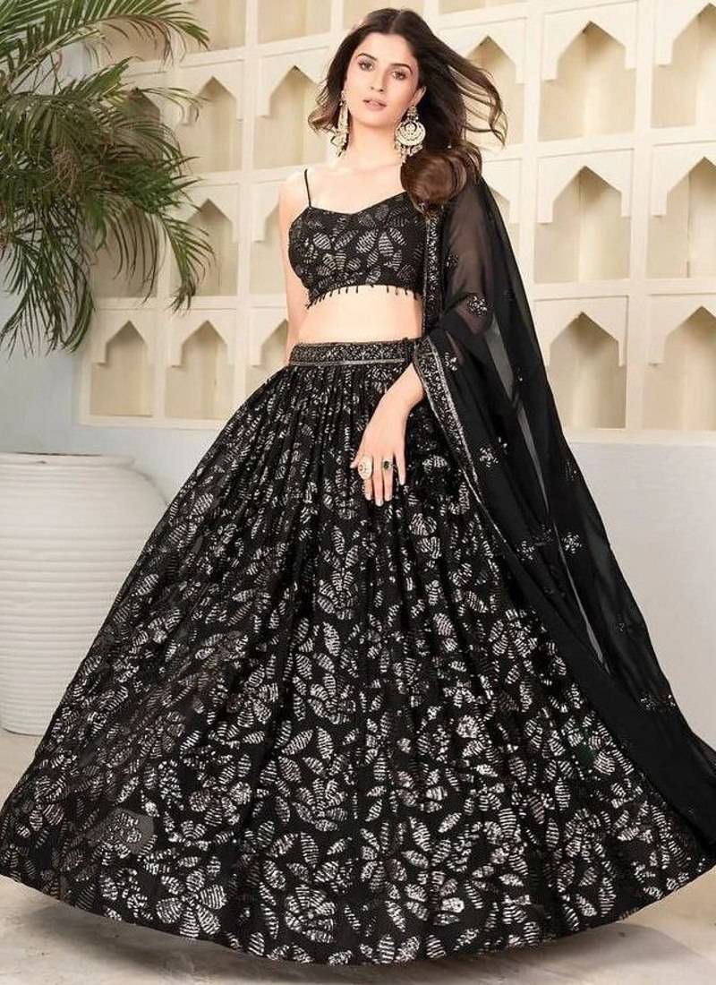 Black lehenga choli with embroidery and heavy sequins work