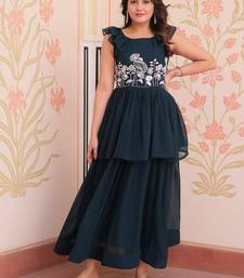 Product Name Blue Designer Faux Blooming Embroidered Gown
