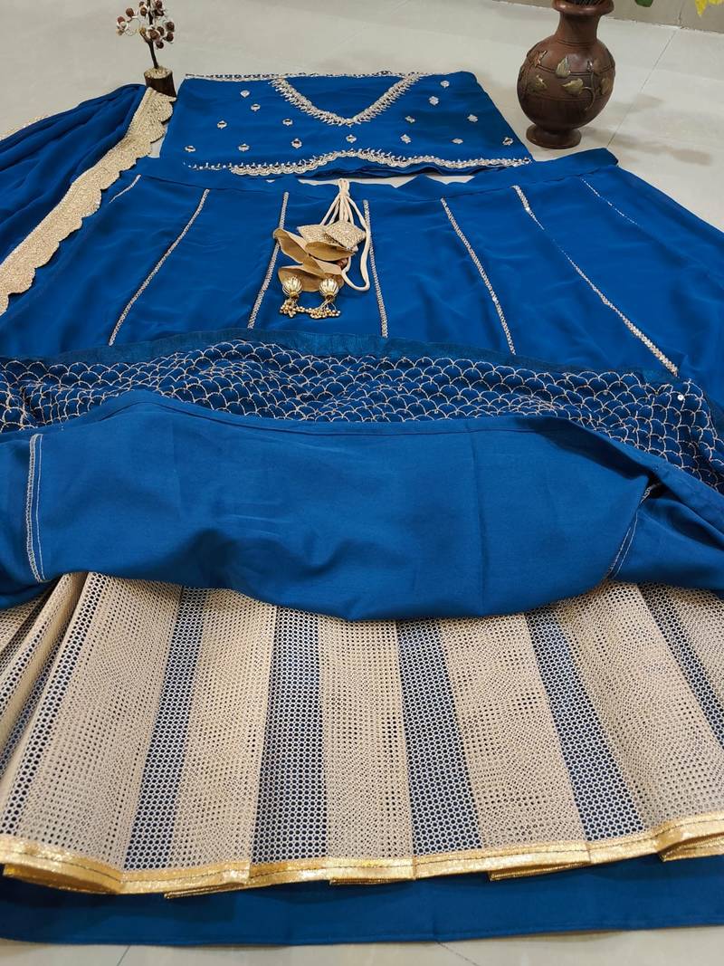Royal Blue Faux Georgette Designer Lehenga Choli