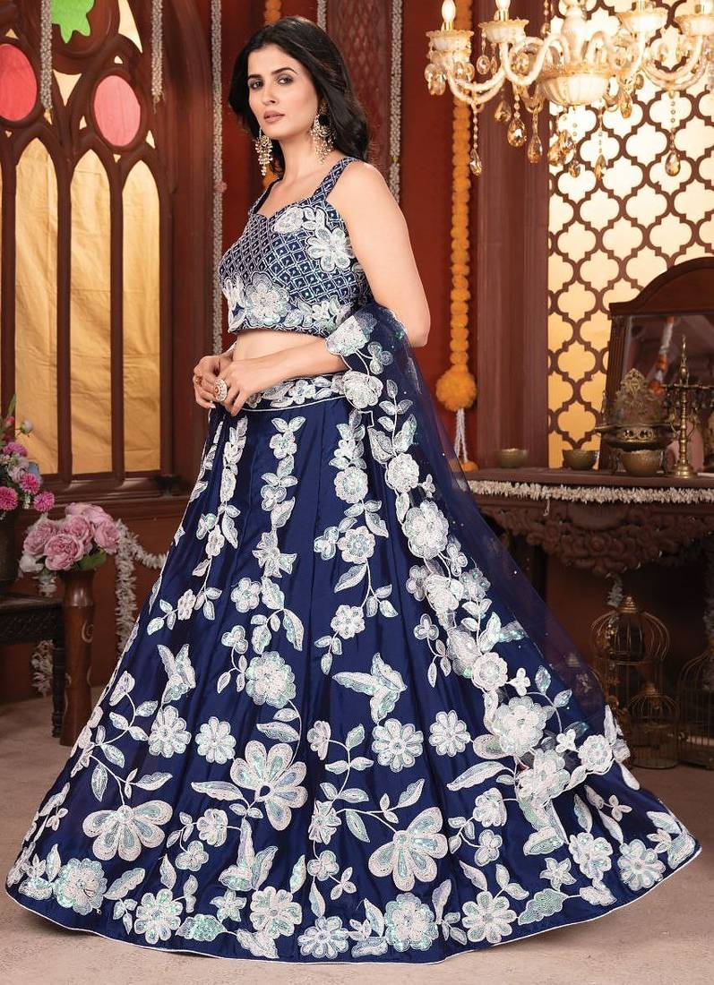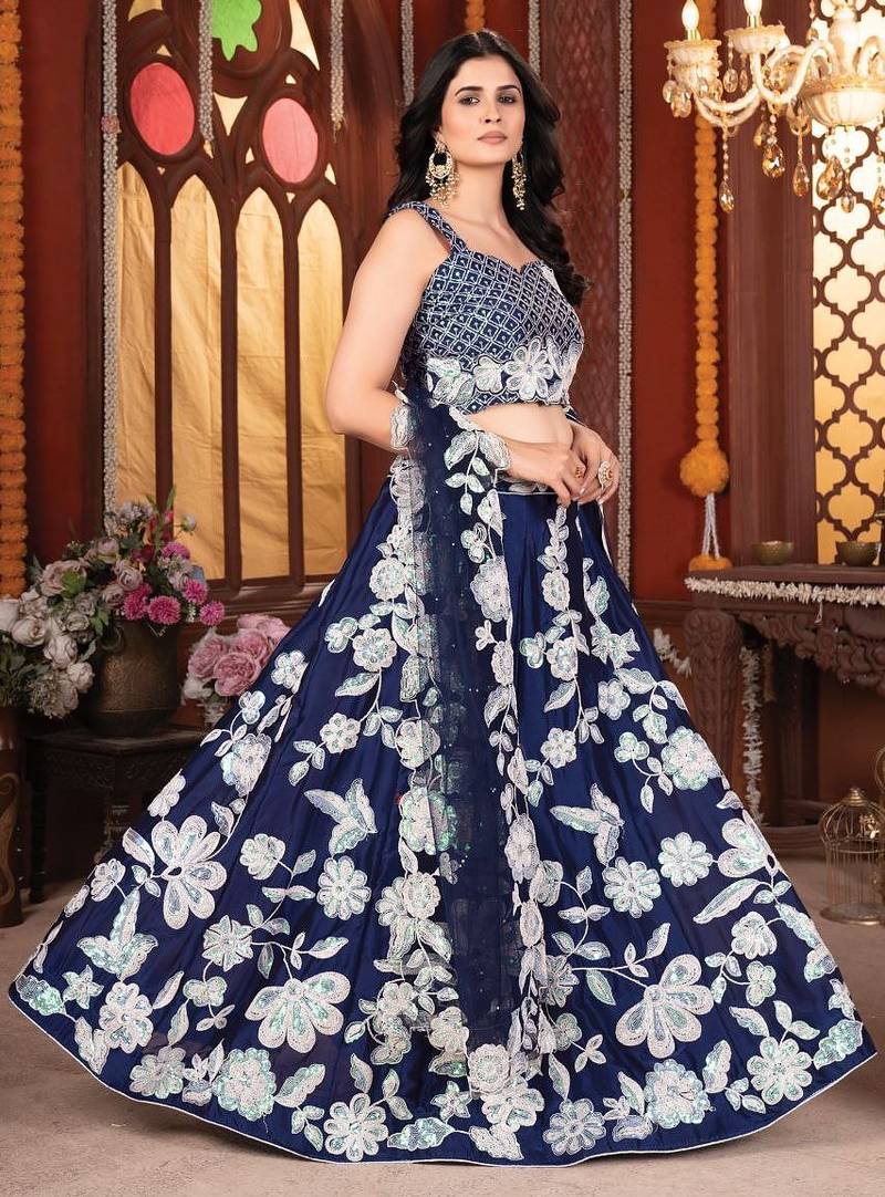 Product Name Navy Blue Kasturi Silk Georgette Embroidered Sequins Lehenga Wedding Wear
