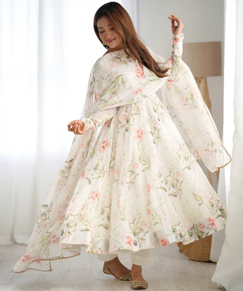 | Product Name | Off White Organza Silk Floral Digital Print Anarkali Suit | |
