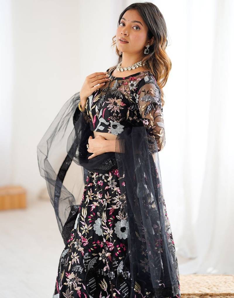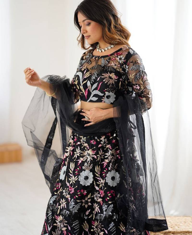 Premium butterfly net lehenga choli with heavy thread & sequins embroidery