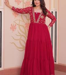 Rani pink faux blooming embroidered sequins zari work gown stitched