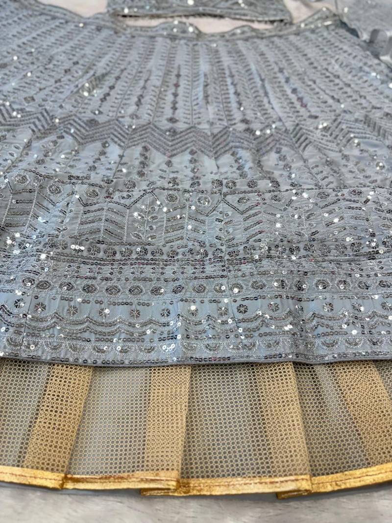 Product Description | Shine With Elegance In This Silver Embroidered Silk Lehenga Set With Dupatta, Perfect For Modern Brides And Wedding Guests. The Lehenga Features Premium Rangoli Silk With Intricate Embroidery, Zari Detailing, And Sequins For A Radiant Finish. Its Flared Silhouette With Cancan And Canvas Offers Dramatic Volume, While The Blouse, Also In Rangoli Silk, Boasts Matching Embroidery And Lace Accents. The Net Dupatta Is Beautifully Adorned With Zari And Sequin Work, Finished With A Diamond Laced Border. Whether You're Attending A Lavish Wedding Or Hosting A Special Ceremony, This Semi Stitched Lehenga Set Promises Elegance, Comfort, And Grandeur. Style It With Silver Toned Jewelry And A Sleek Updo To Complete Your Ethereal Festive Look. |