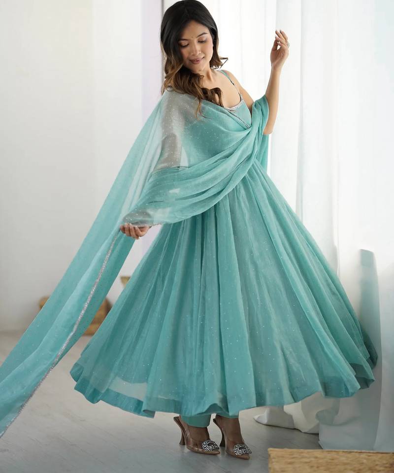 | Product Name | Sky Blue Color Crunchy Silk Three Piece Anarkali Suit | |