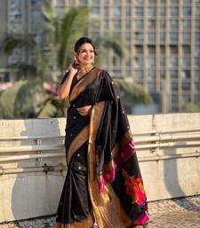 Black zari woven vitthala god paithani silk blend saree