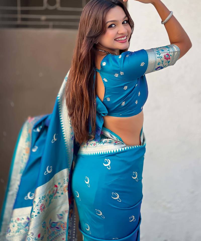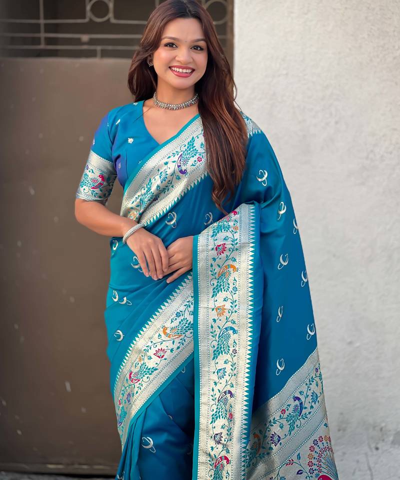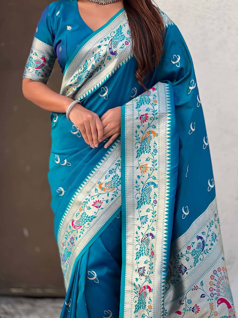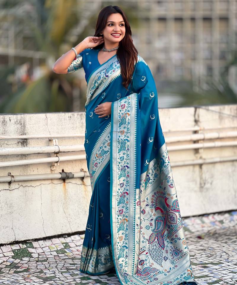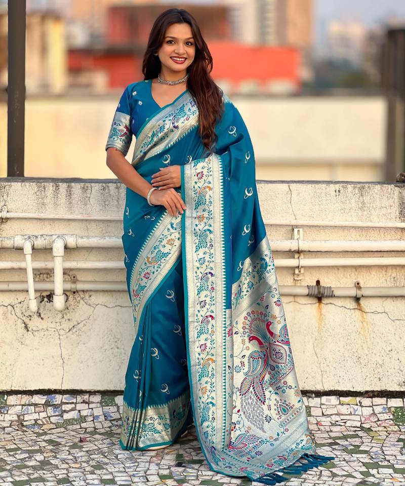 | • | Saree | : | Color- Teal / Fabric- Paithani Silk |
