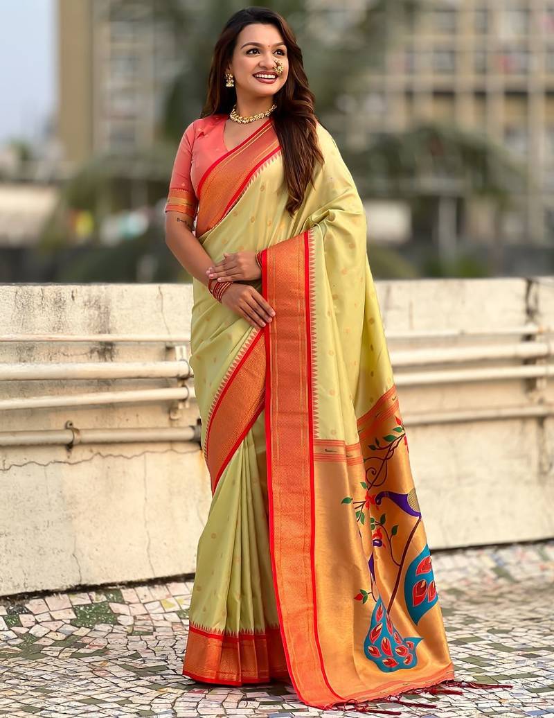 Multicolor zari woven paithani art silk traditional wear saree with unstitched blouse
