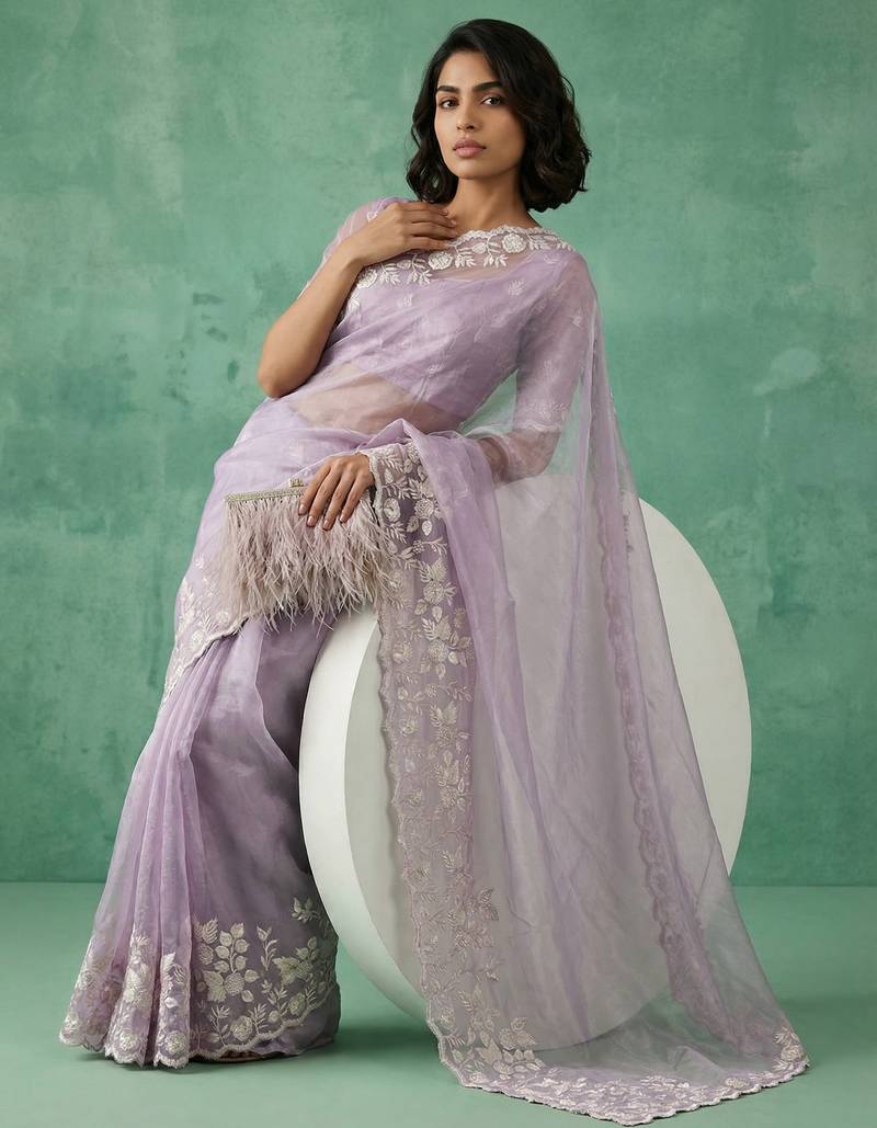 | • | Saree | : | Color- Lavender / Fabric- Art Silk |
