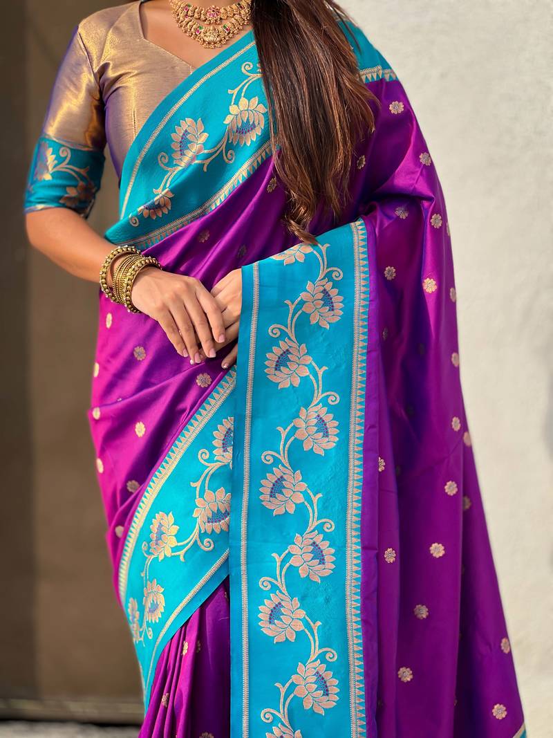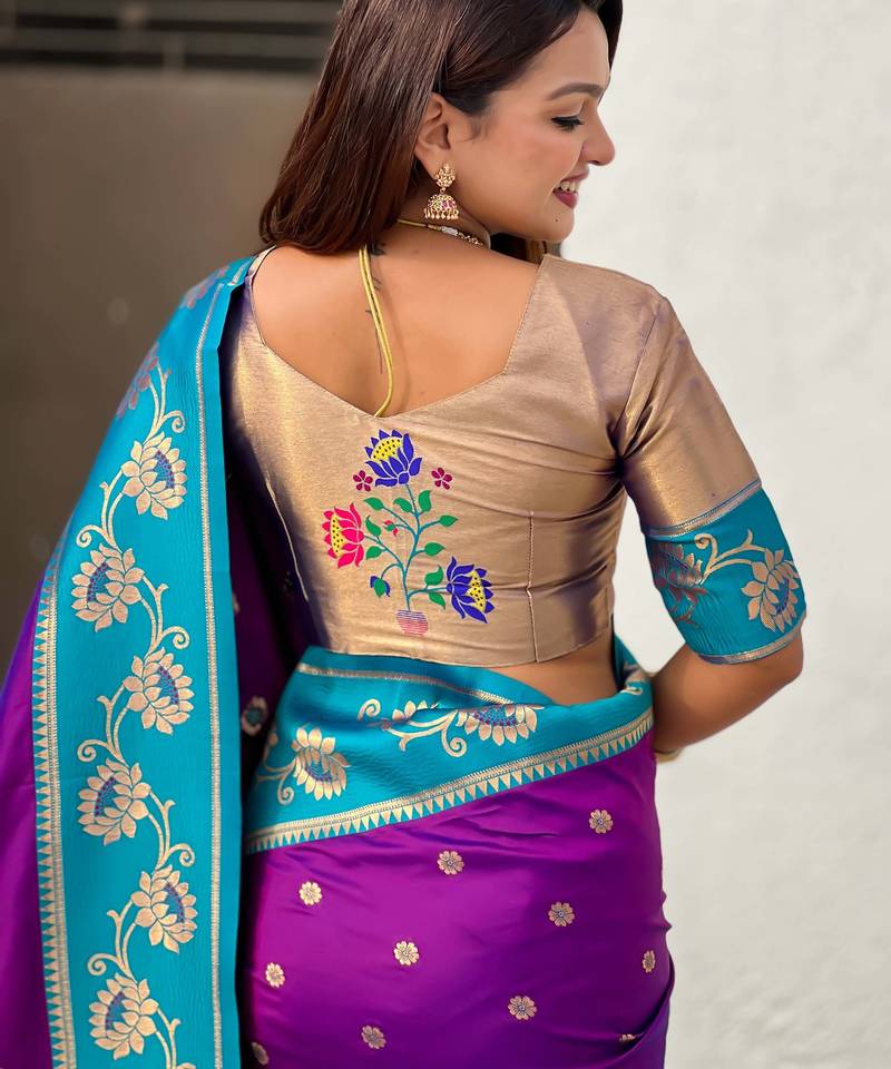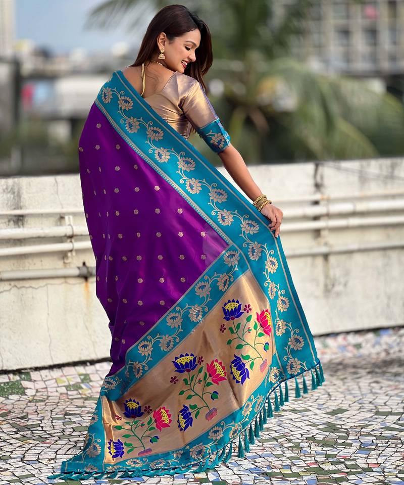 Soft silk lotus paithani zari woven saree