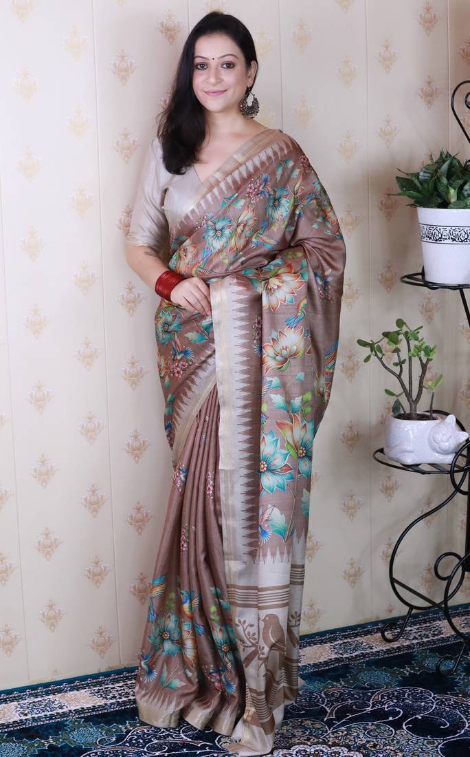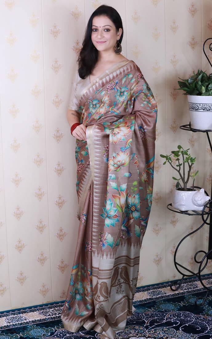 | Product Name | Soft Tussar Silk Blend Nature Printed Zari Woven Saree | |