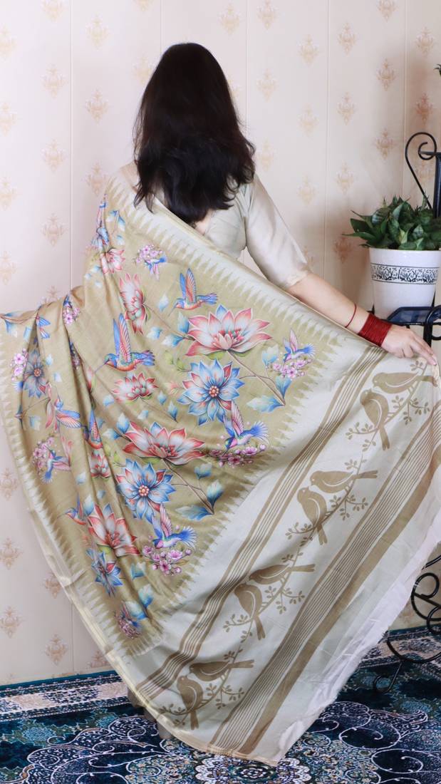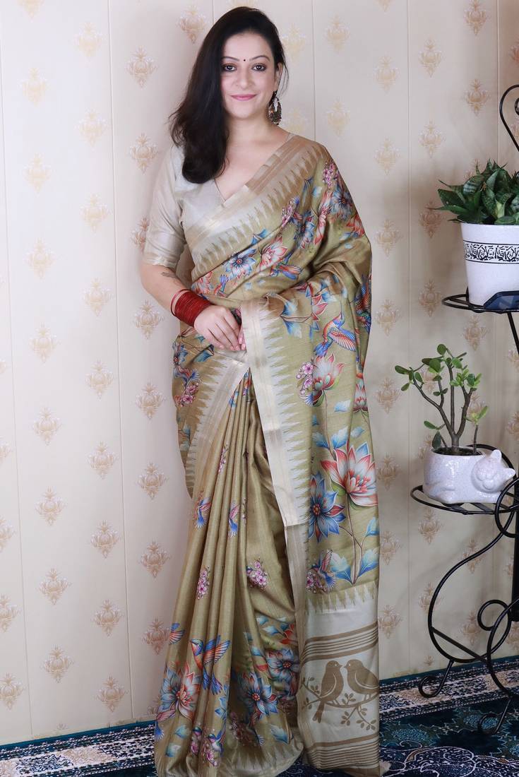 | Product Name | Soft Tussar Silk Blend Nature Printed Zari Woven Saree | |